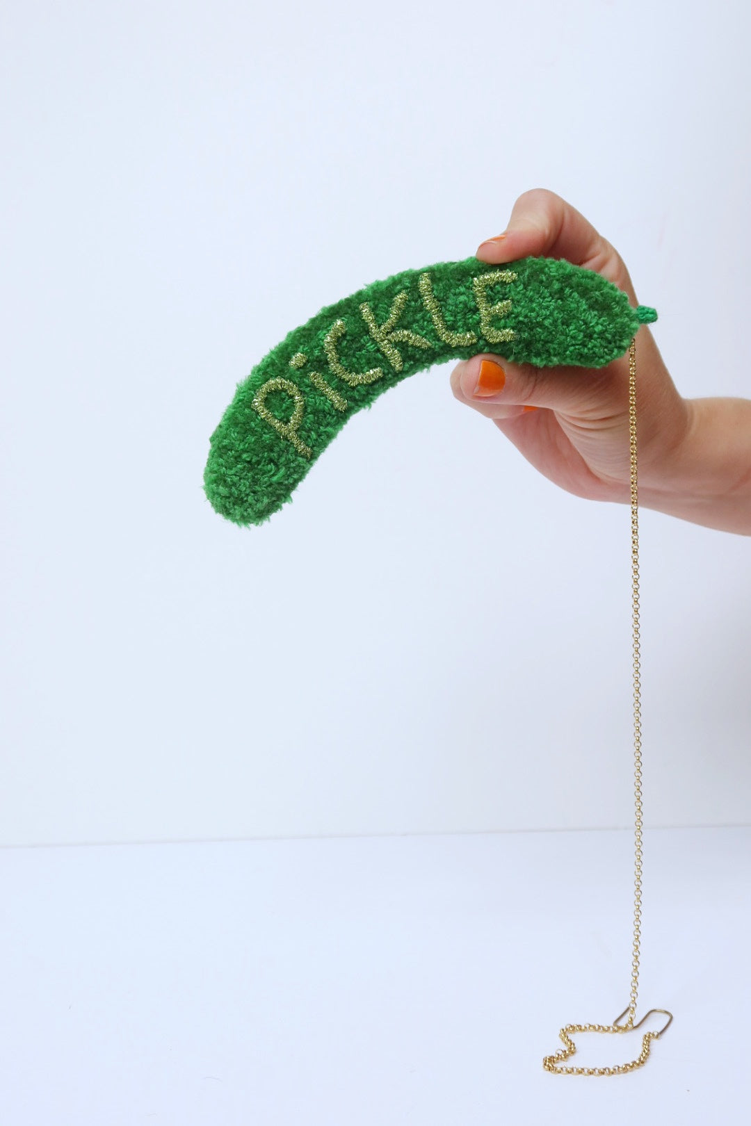 This handmade textile sausage is embroidered with "Tickle My" on one side and "Pickle" on the other - a humorous and playful artwork that's guaranteed to make people smile.
