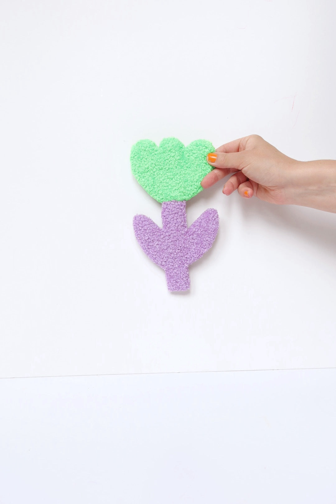 🌸 Blomst - Grøn & Lilla Tekstilkunst