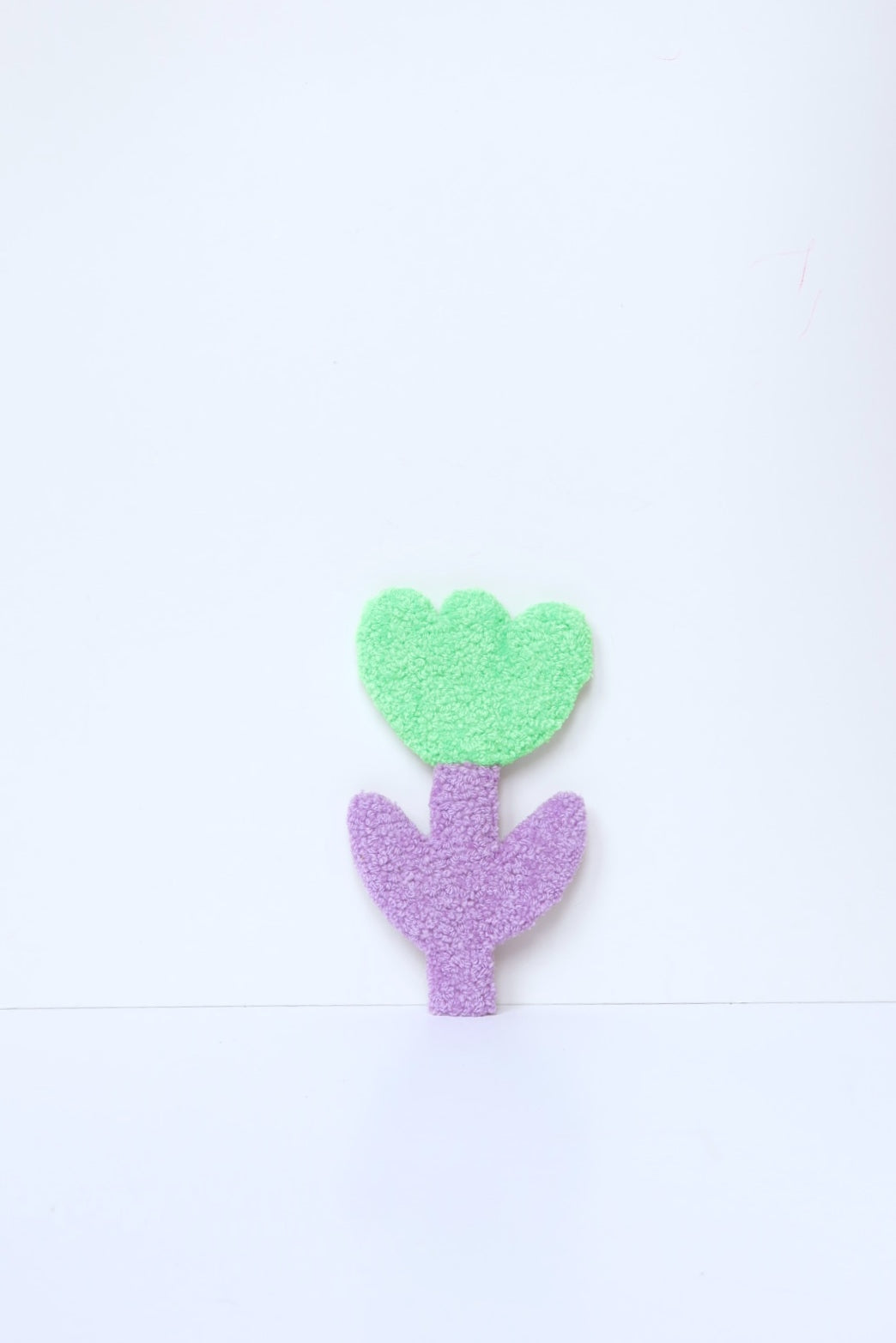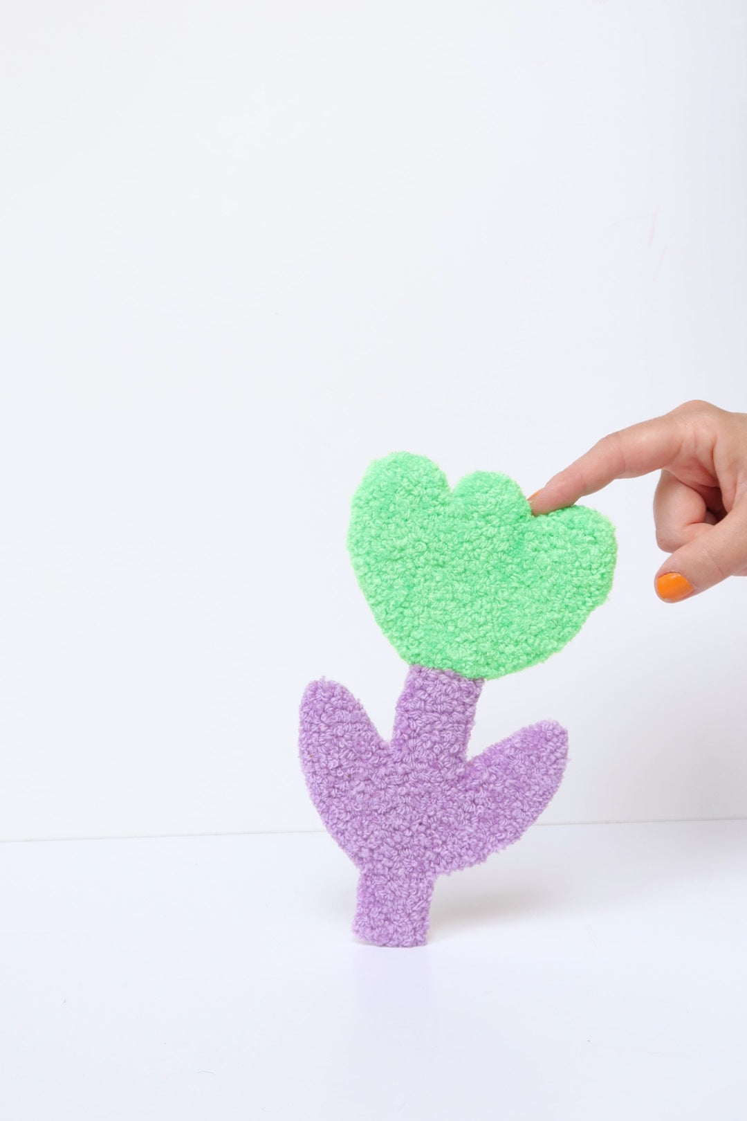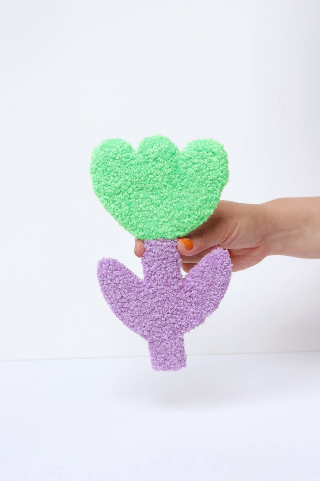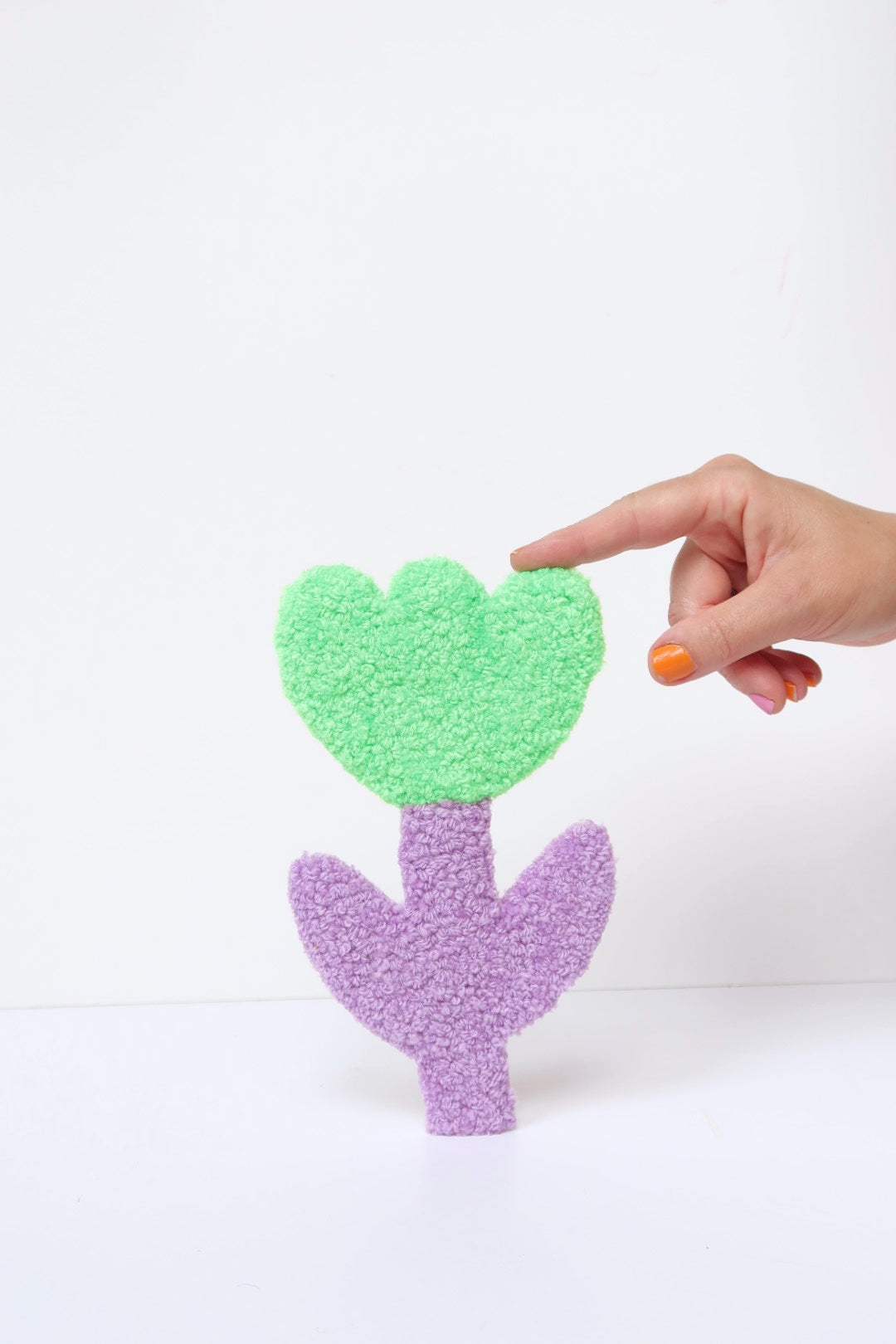 Denne håndlavede blomst i smukke Grøn & Lilla farver er et charmerende kunstværk der tilføjer farve og personlighed til dit hjem. Hver blomst er unik og omhyggeligt håndlavet med Danella-nål.