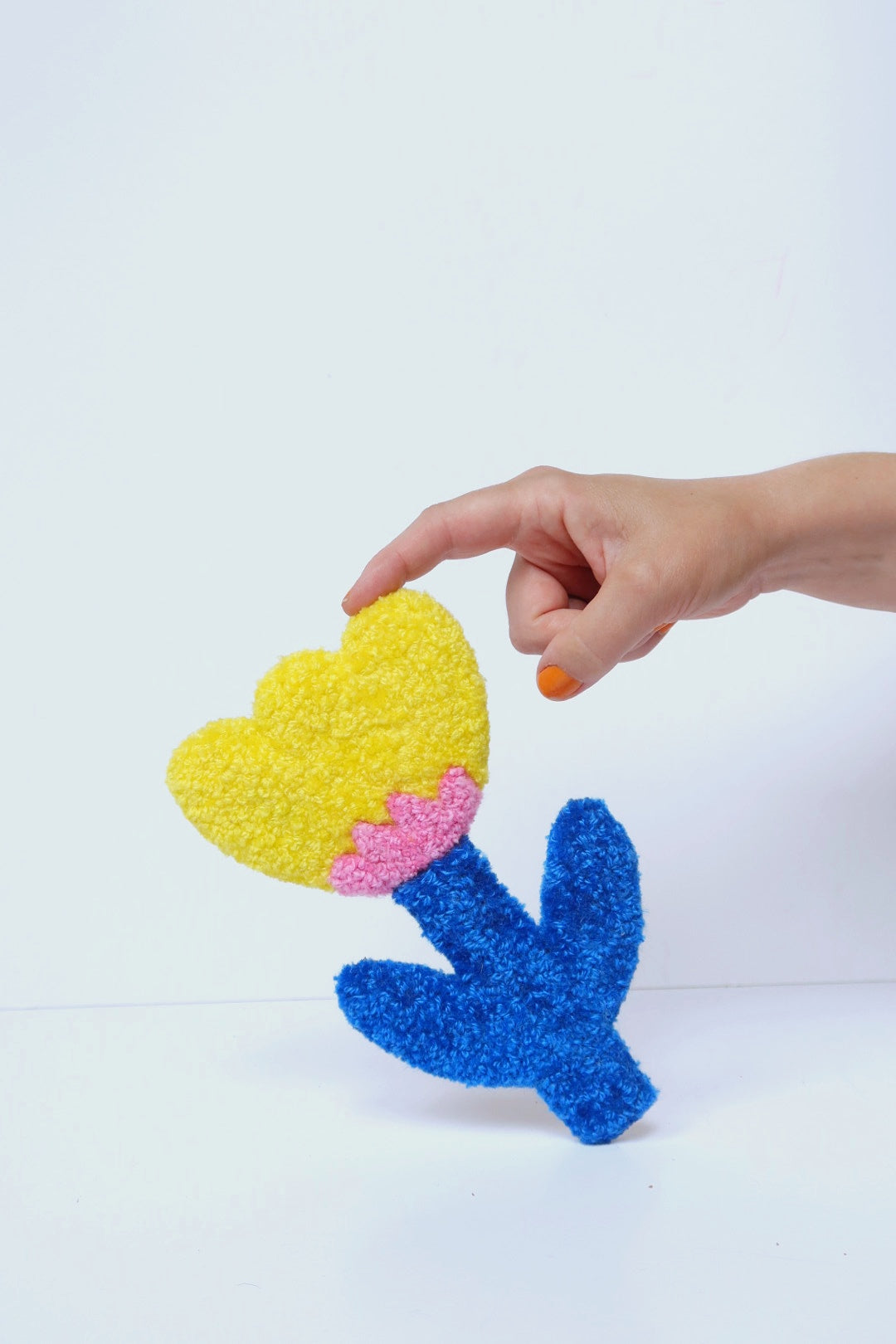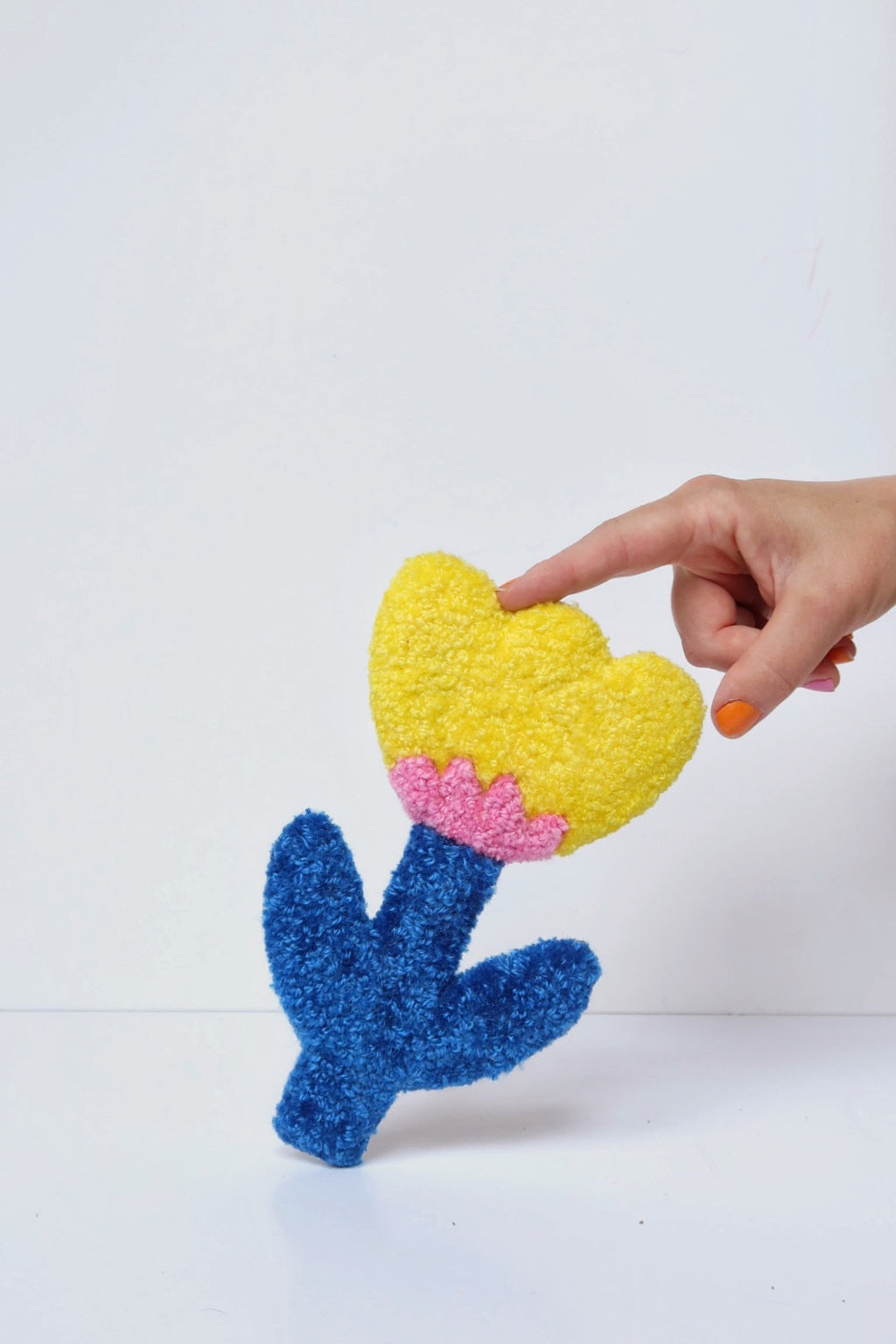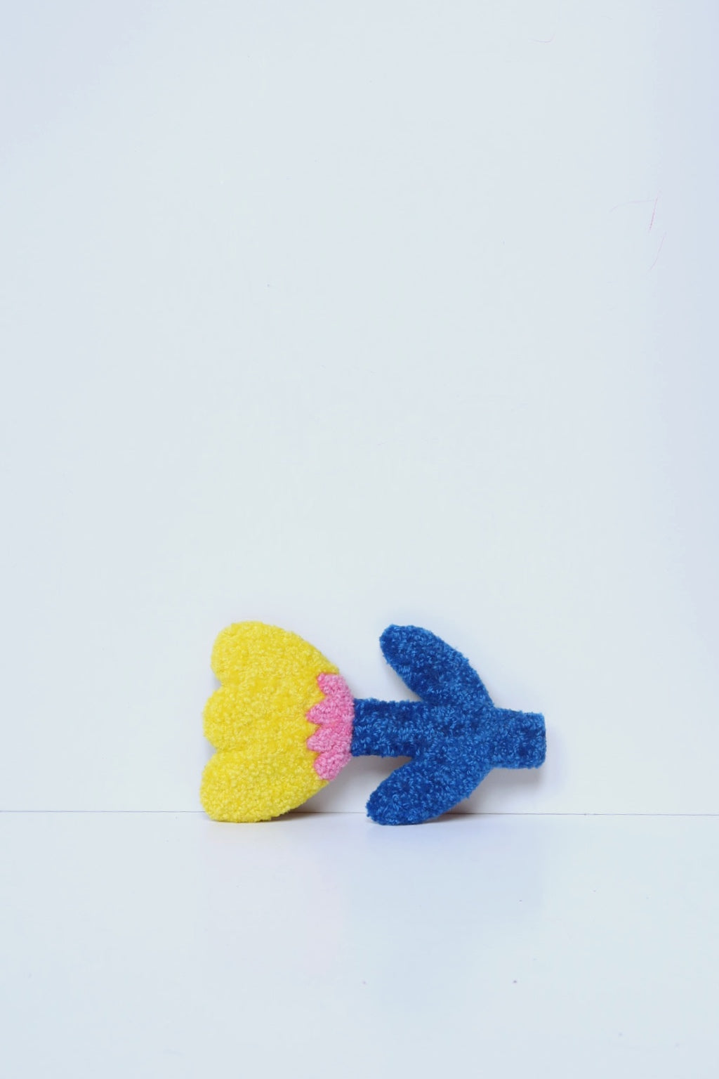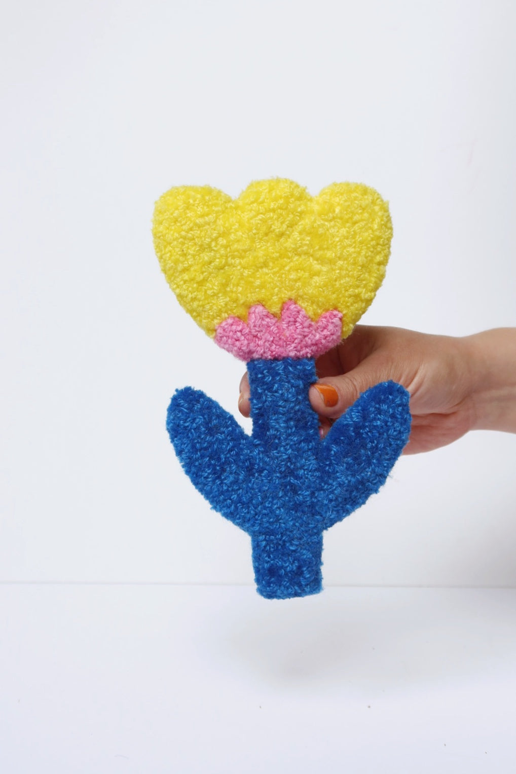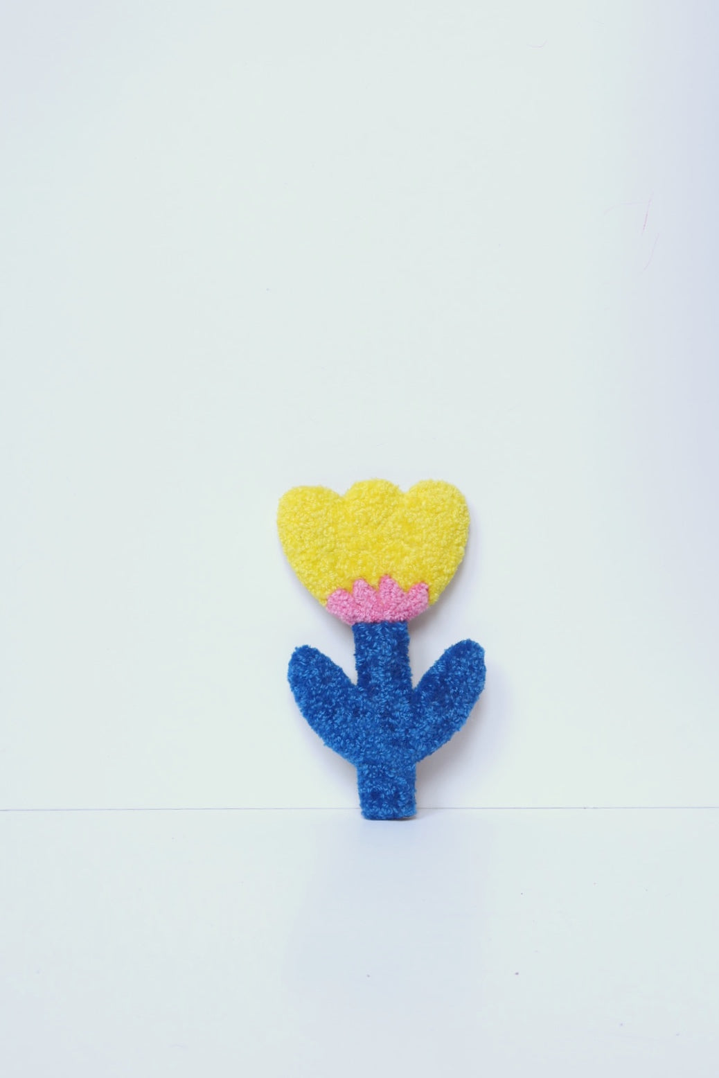 Denne håndlavede blomst i smukke gul, lyserød og blå farver er et charmerende kunstværk der tilføjer farve og personlighed til dit hjem. Hver blomst er unik og omhyggeligt håndlavet med Danella-nål.