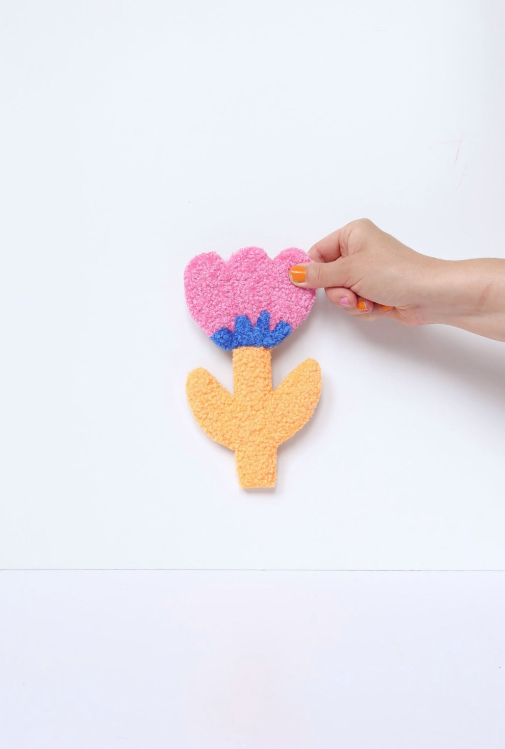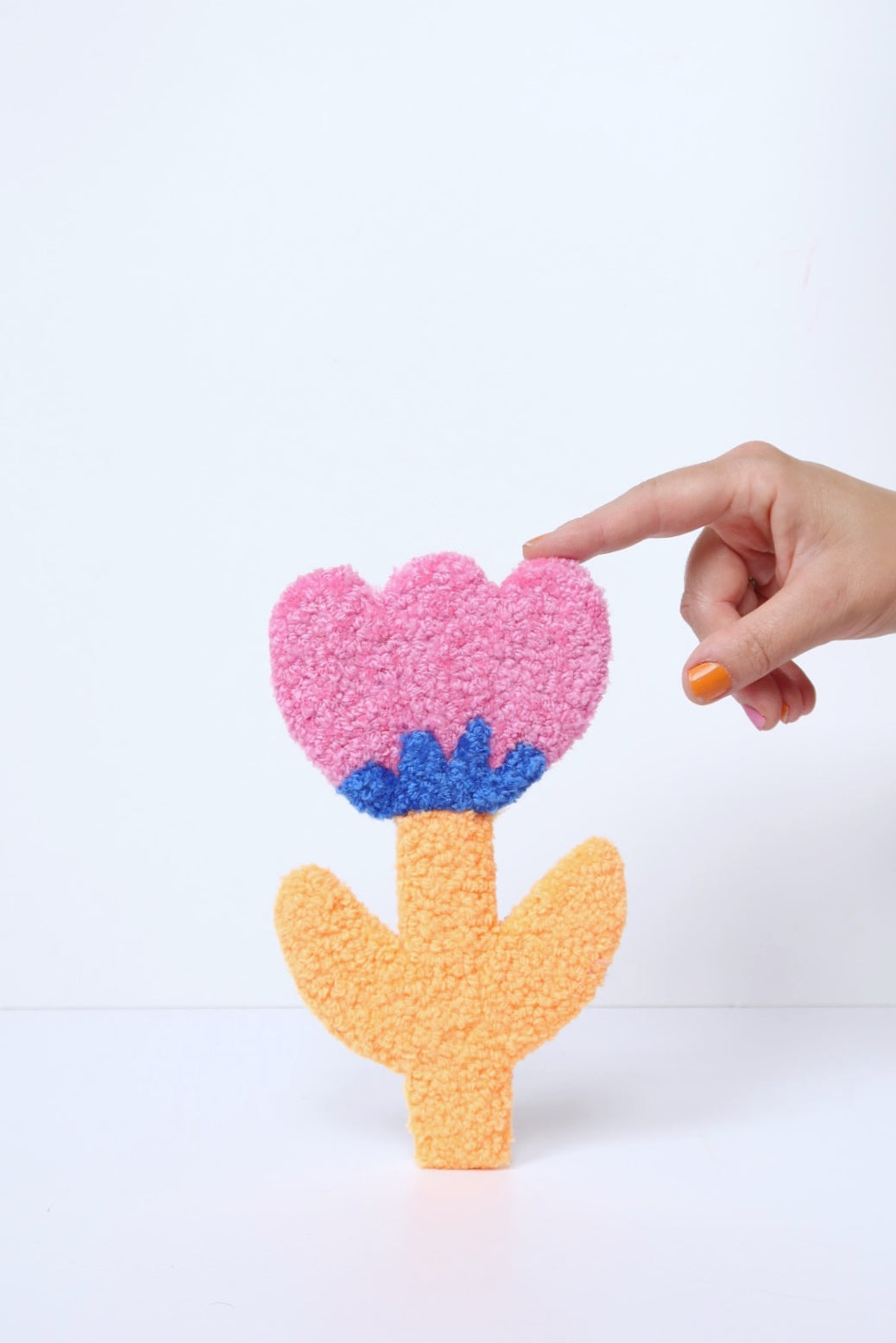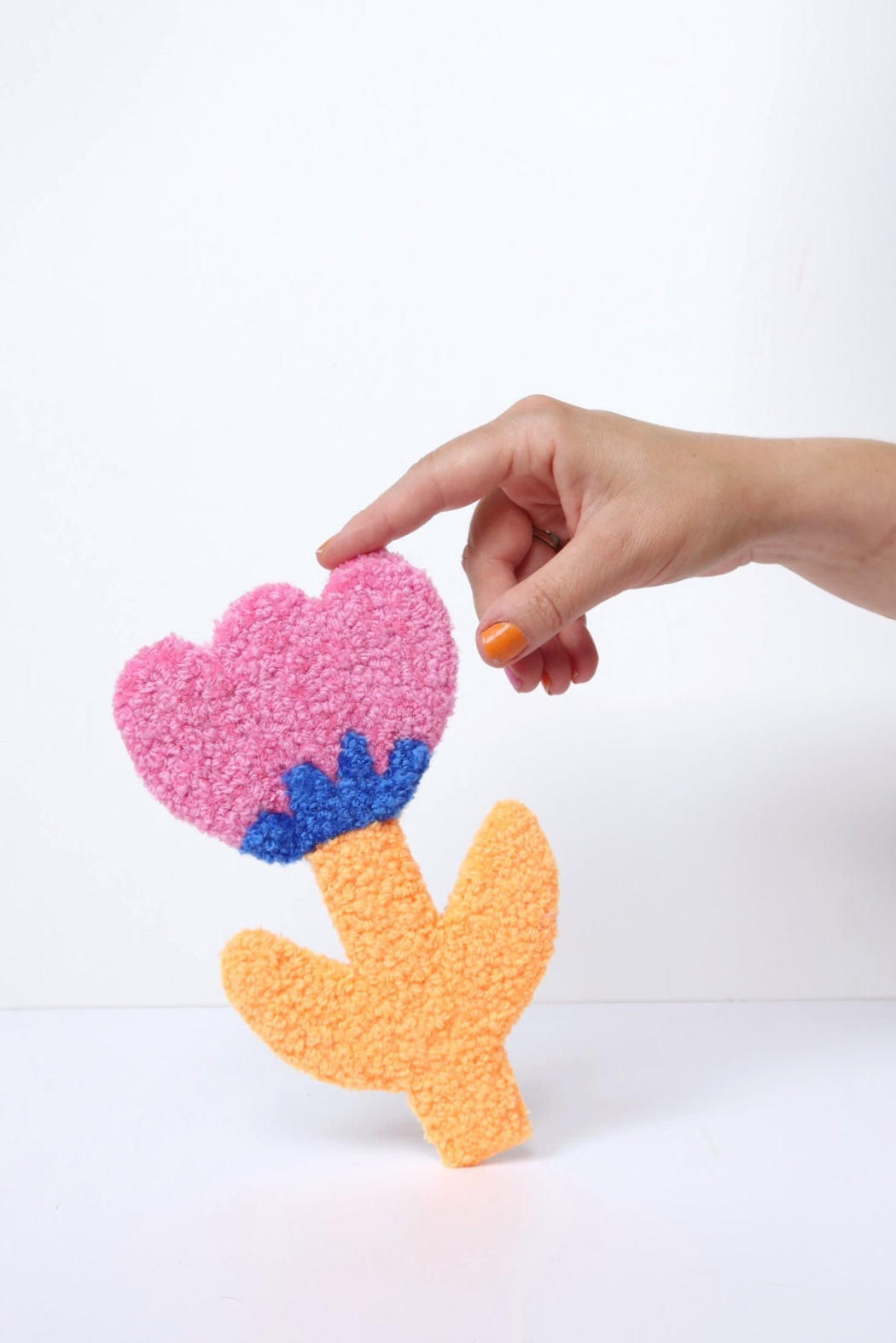 🌸 Blomst - Lyserød, Blå & Orange Tekstilkunst