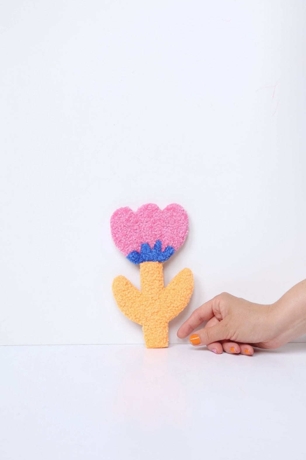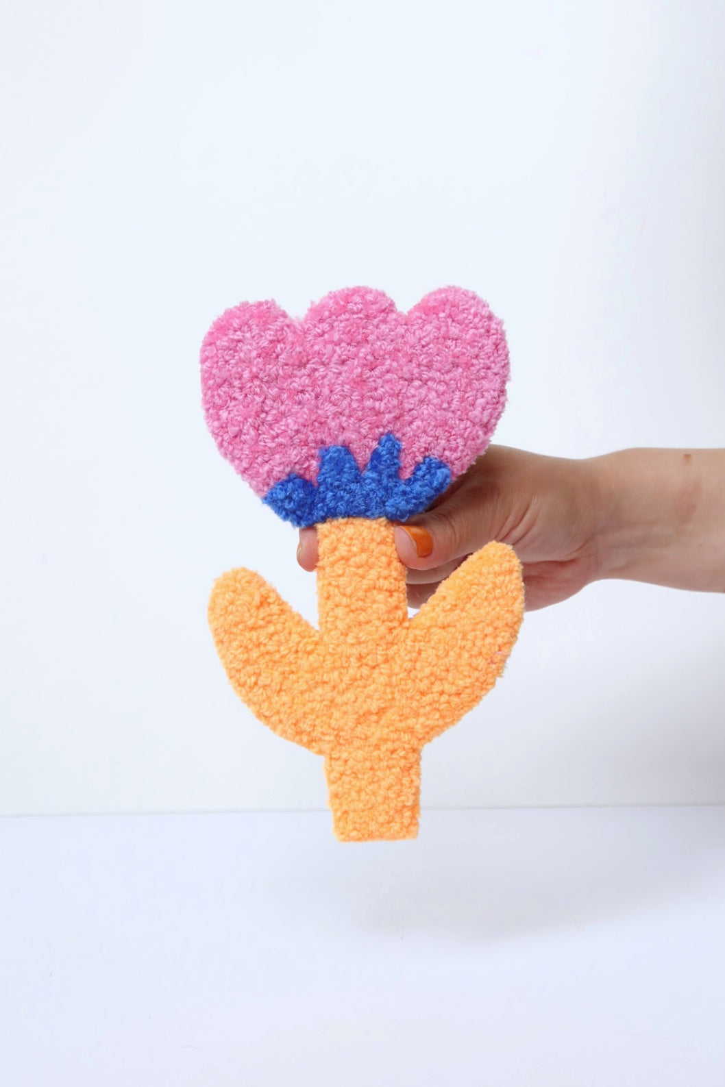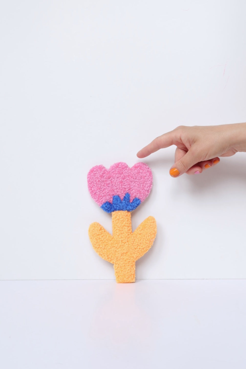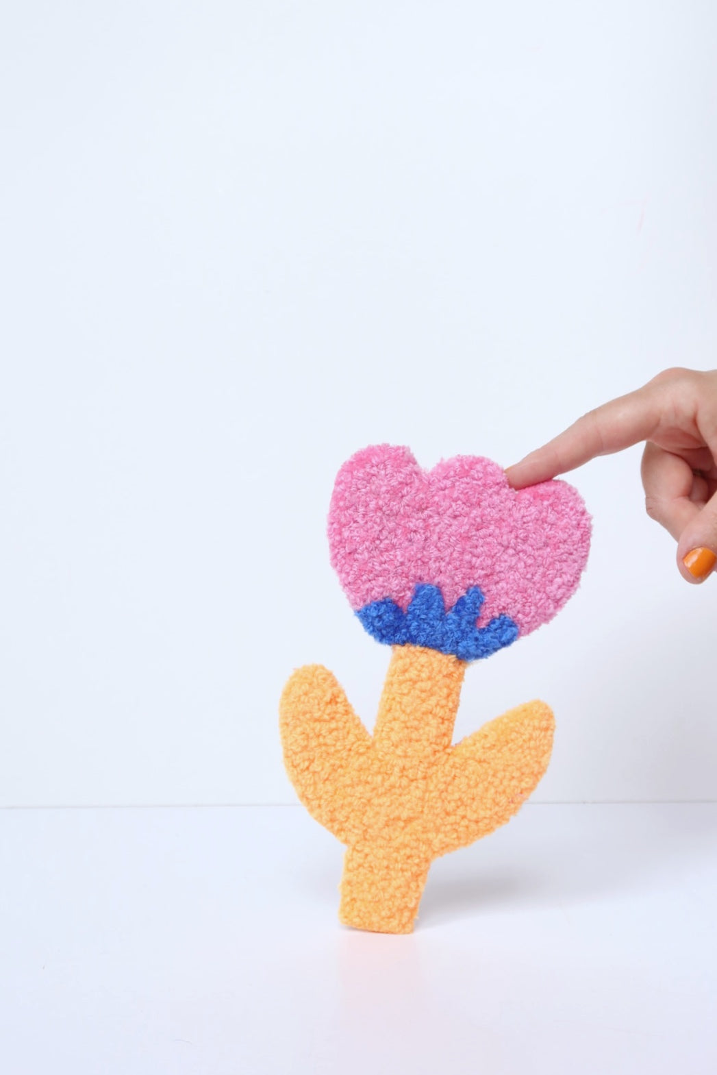 🌸 Blomst - Lyserød, Blå & Orange Tekstilkunst
