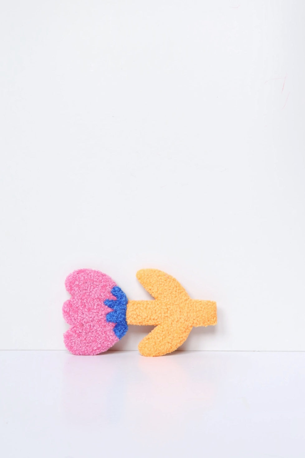 Denne håndlavede blomst i smukke Lyserød, Blå og Orange farver er et charmerende kunstværk der tilføjer farve og personlighed til dit hjem. Hver blomst er unik og omhyggeligt håndlavet med Danella-nål.
