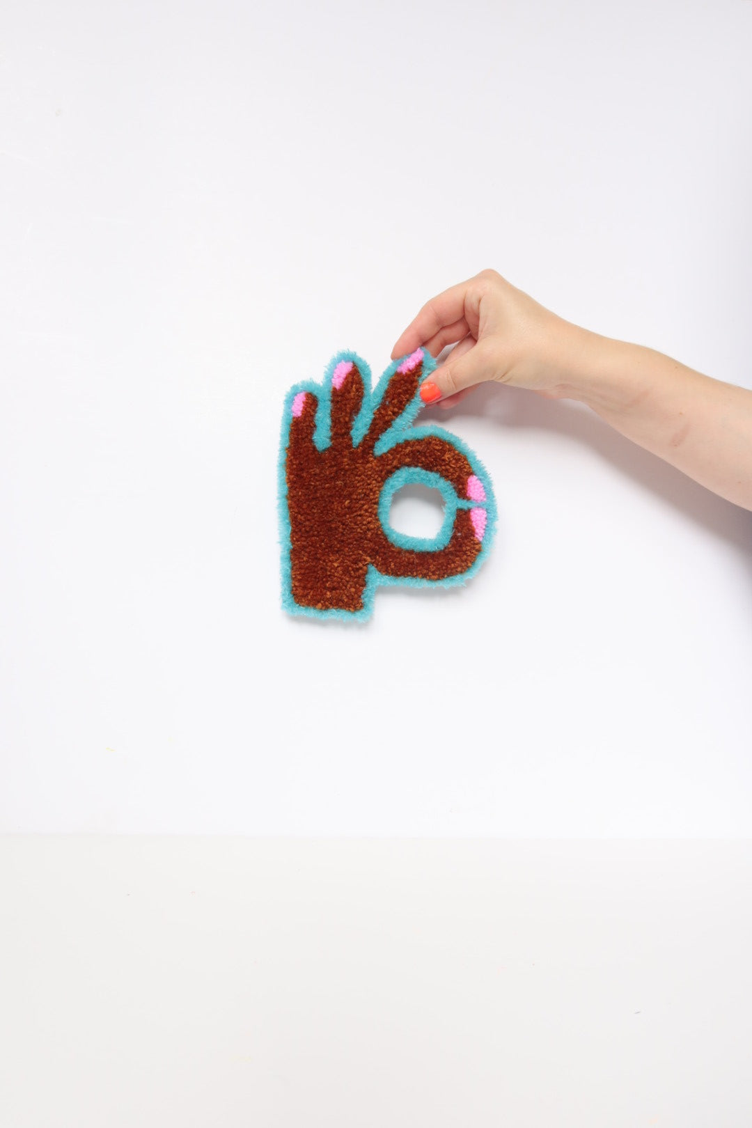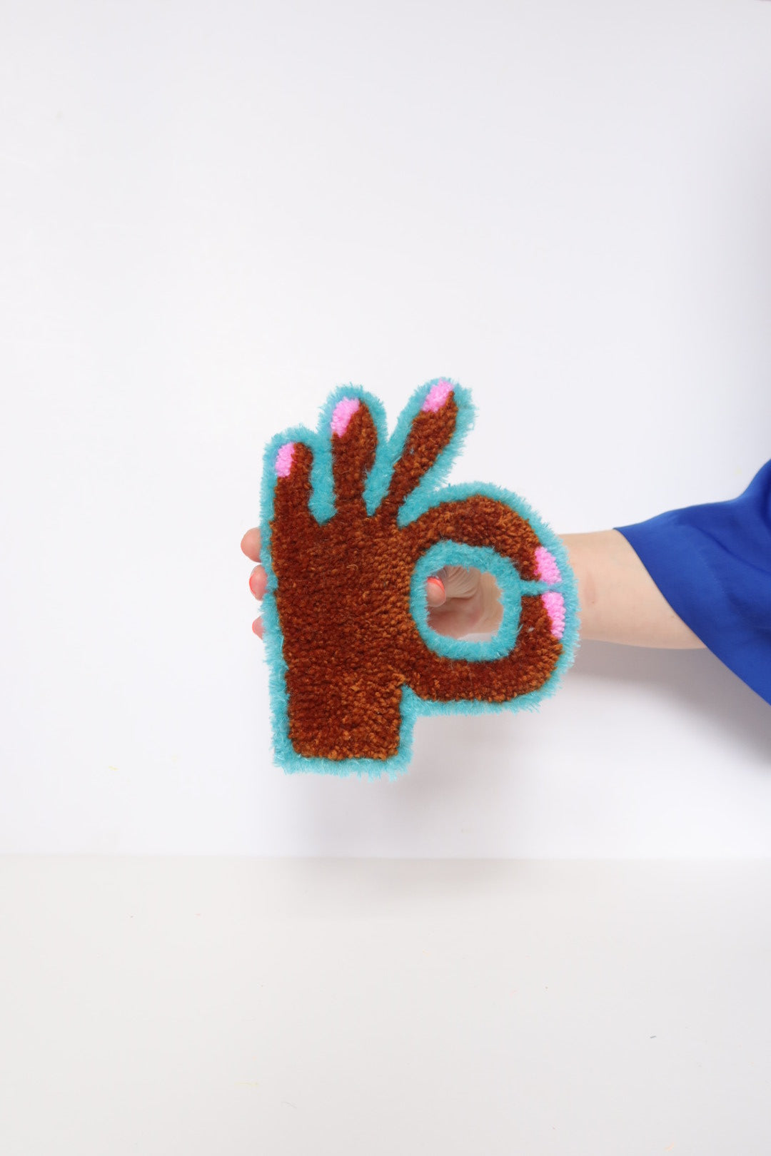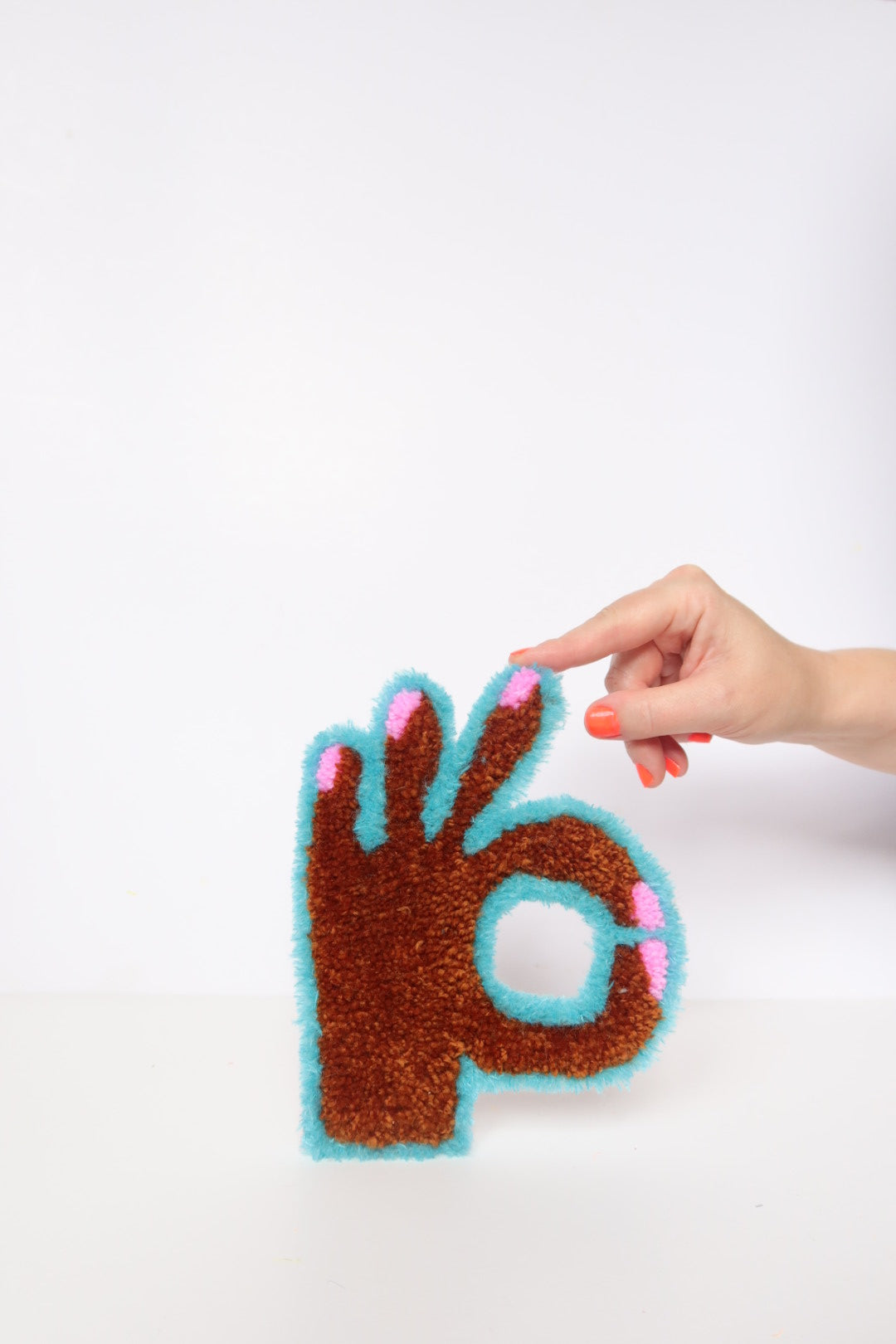Denne håndlavede OK-hånd i mint og lyserød er et opmuntrende og positivt kunstværk der minder dig om at alt bliver godt. Med sit optimistiske budskab spreder den håb og positive vibes i dit hjem.