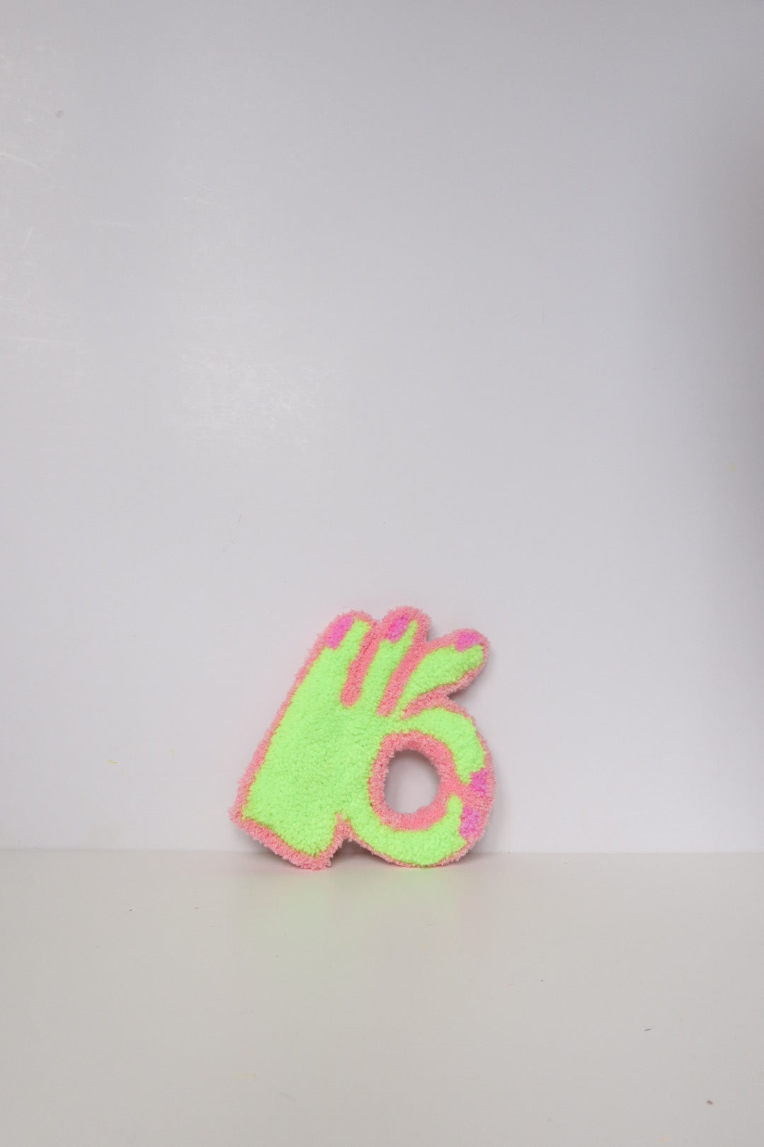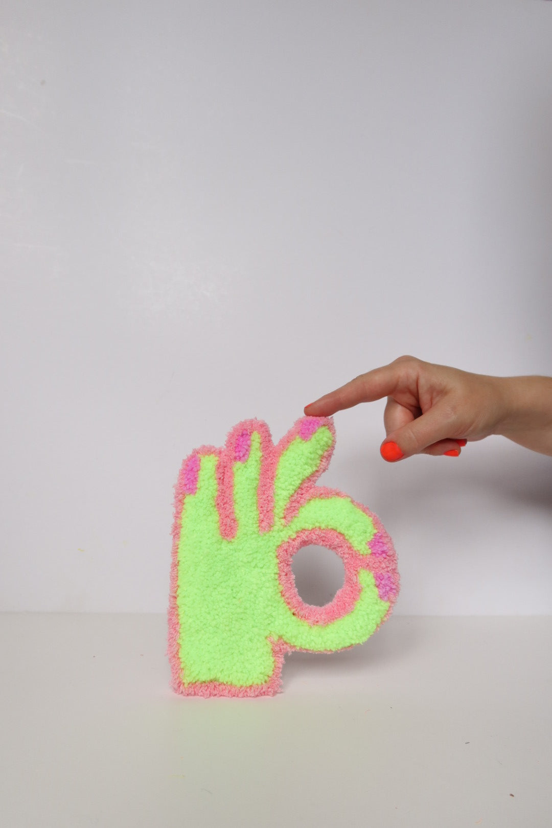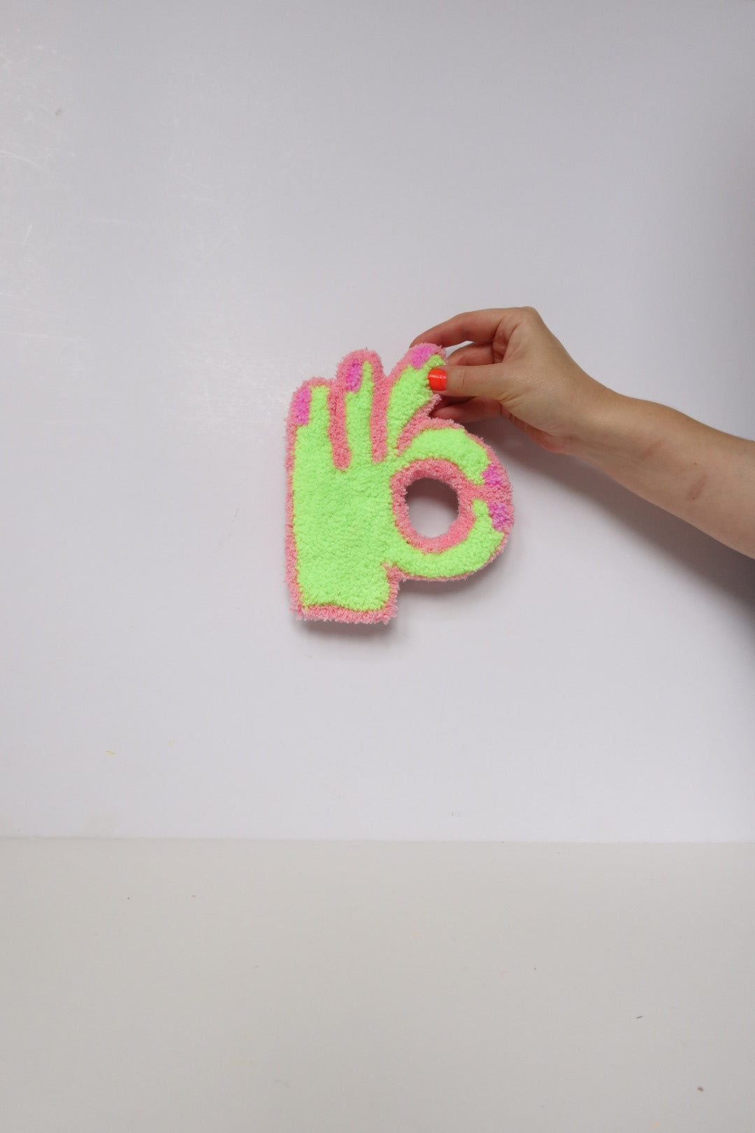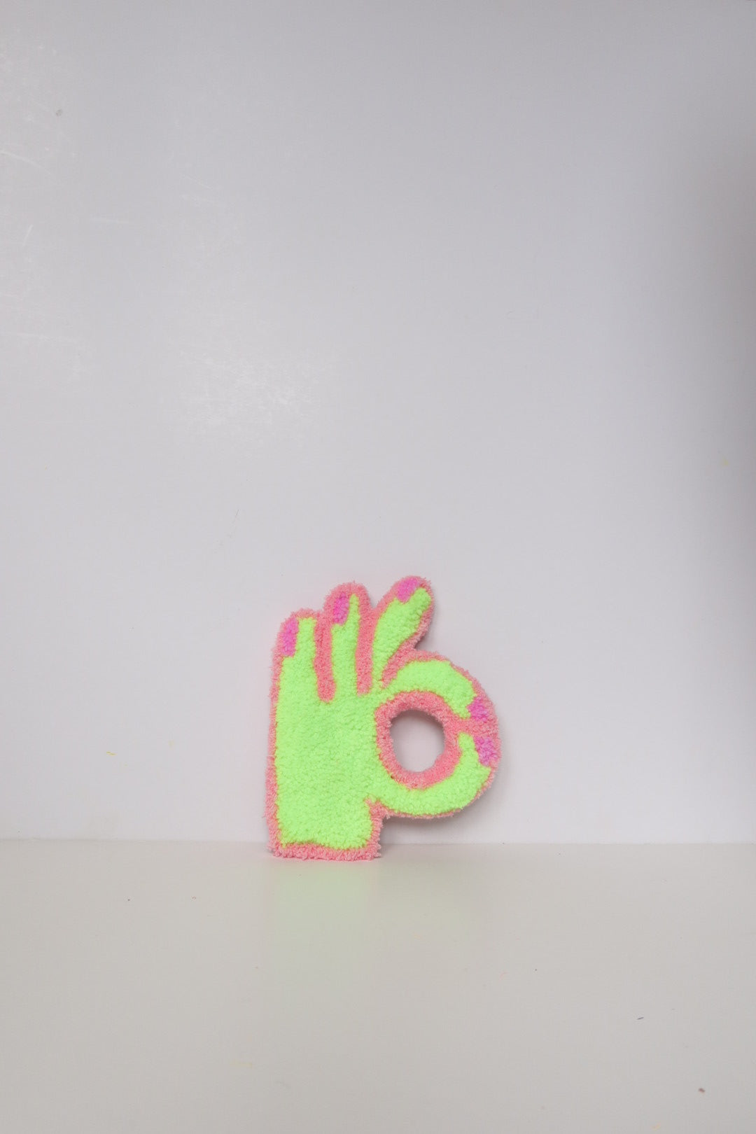 Denne håndlavede OK-hånd i mint og lyserød er et opmuntrende og positivt kunstværk der minder dig om at alt bliver godt. Med sit optimistiske budskab spreder den håb og positive vibes i dit hjem.