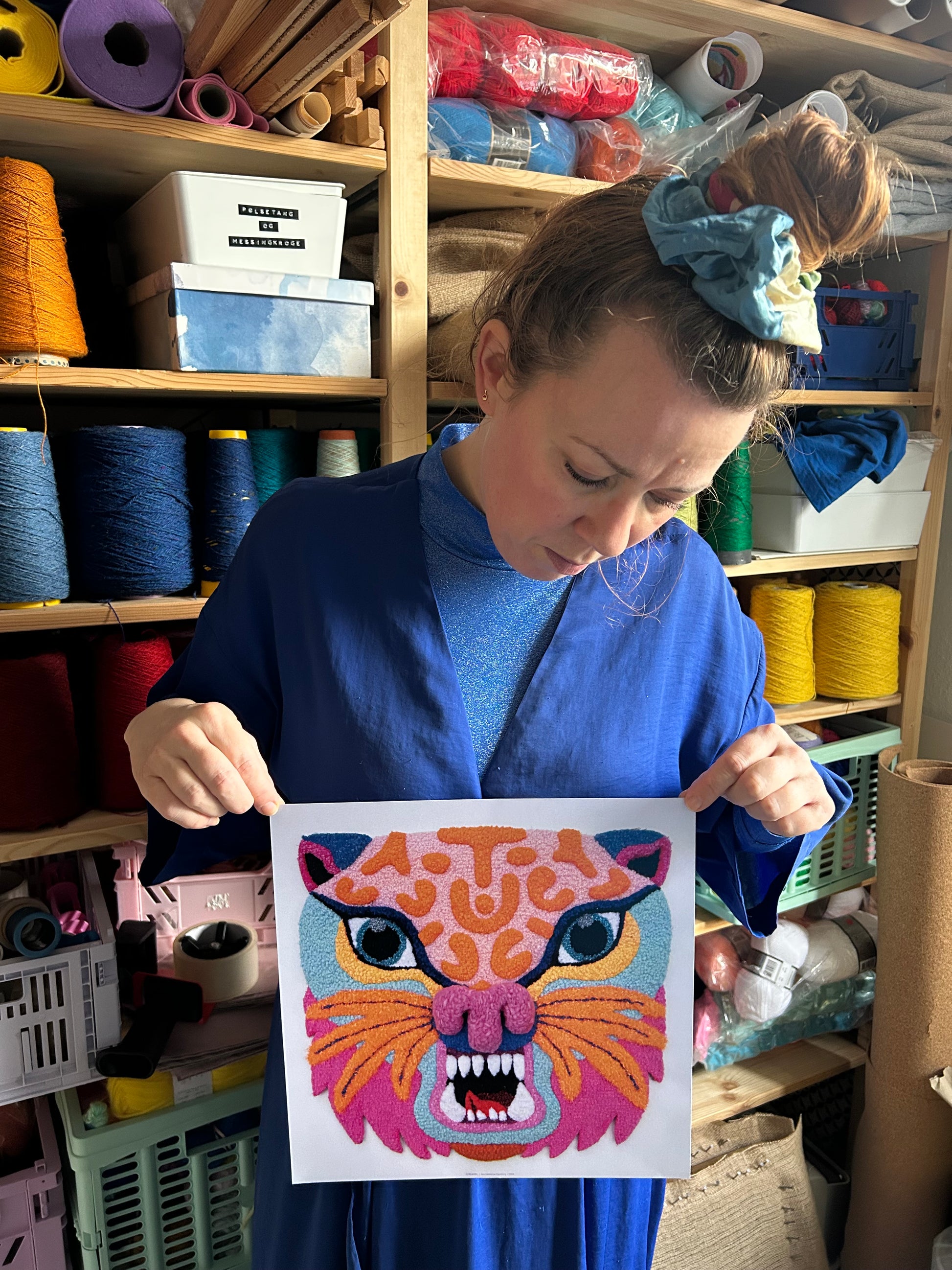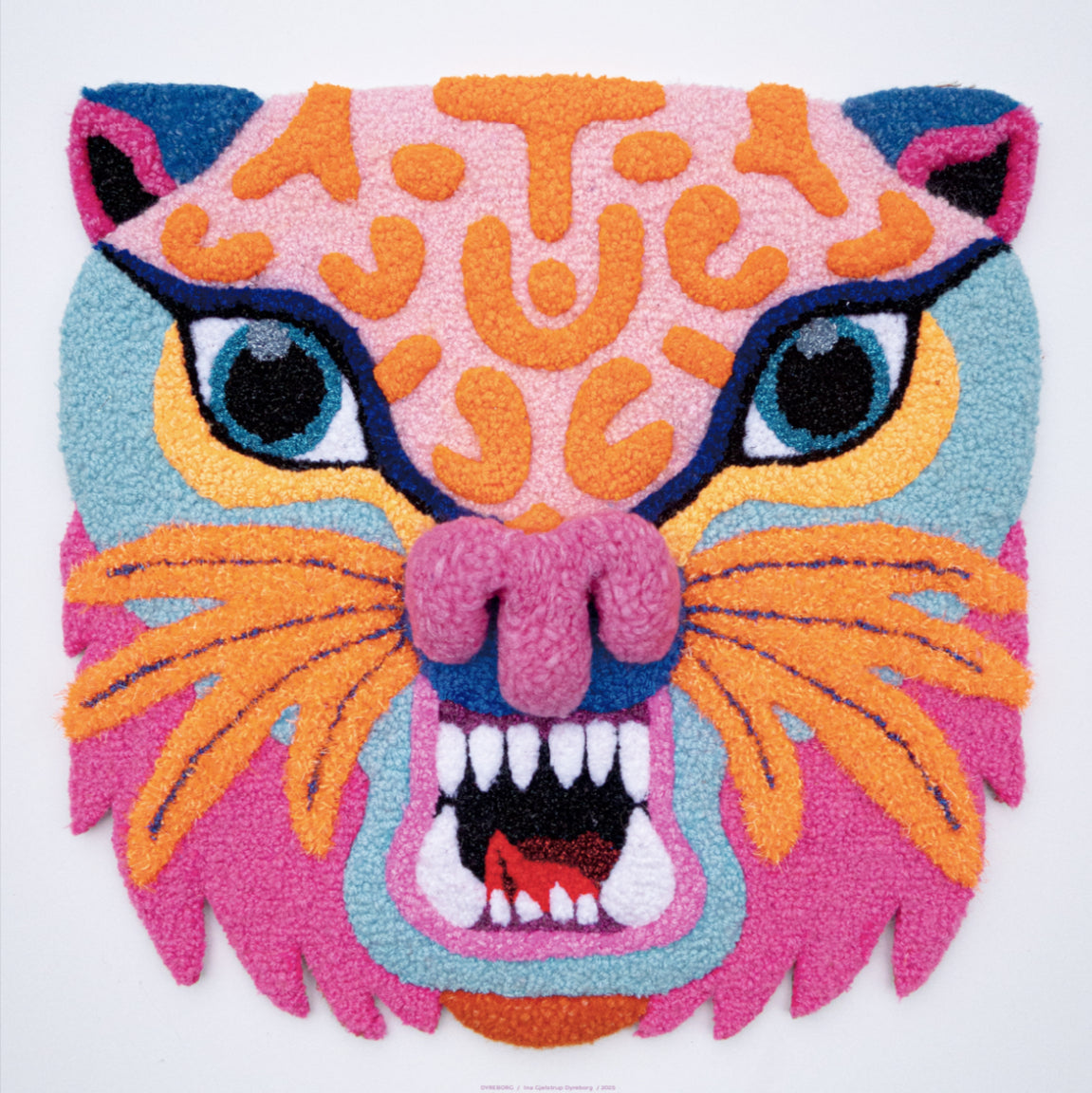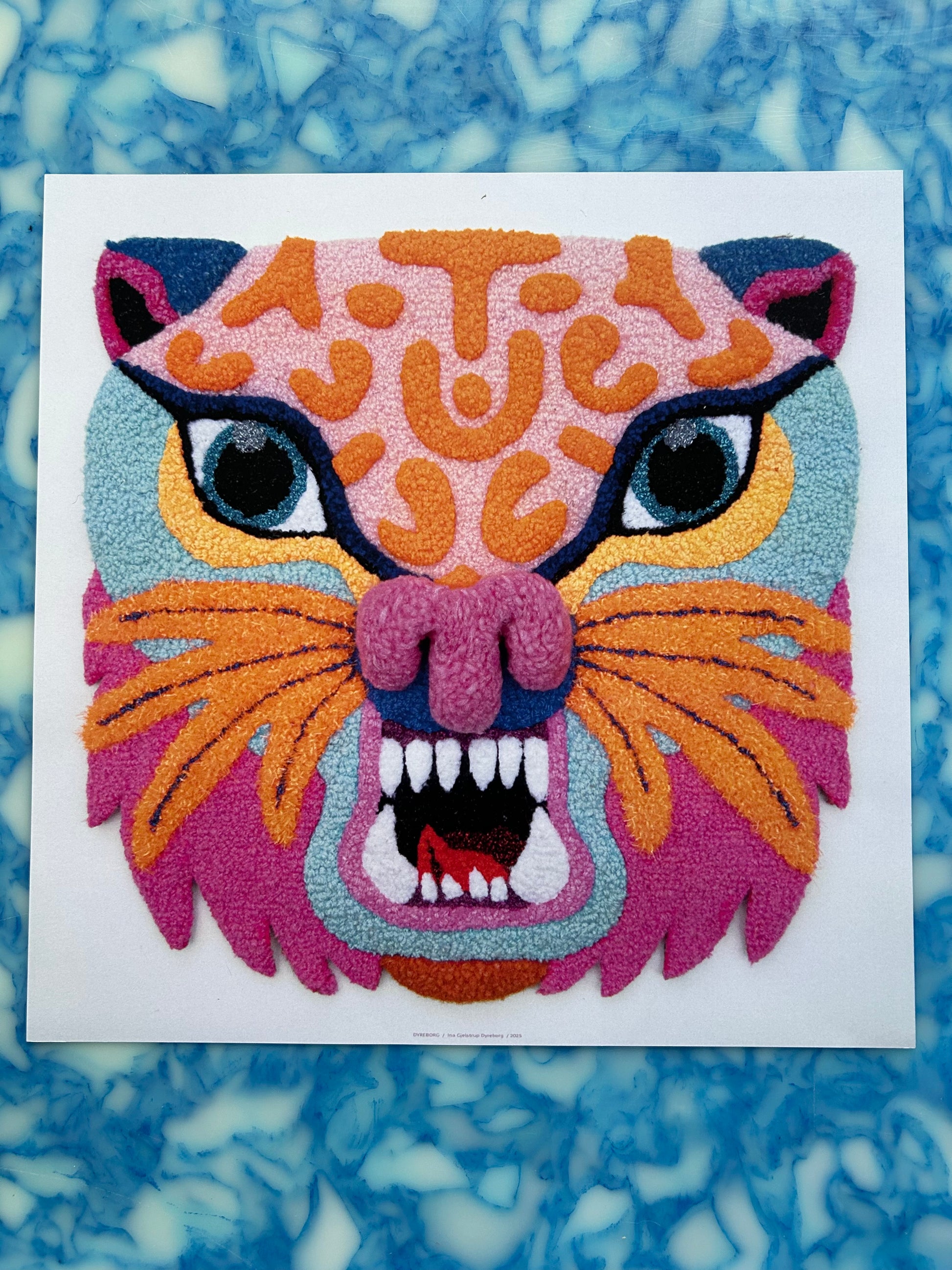 Feline - Pink, Orange & Blå - Plakat af Håndlavet Tuftet Maske