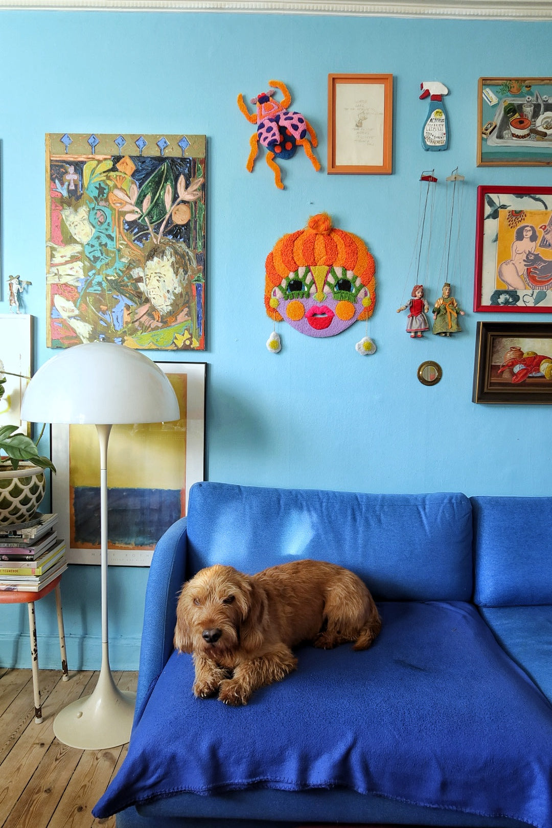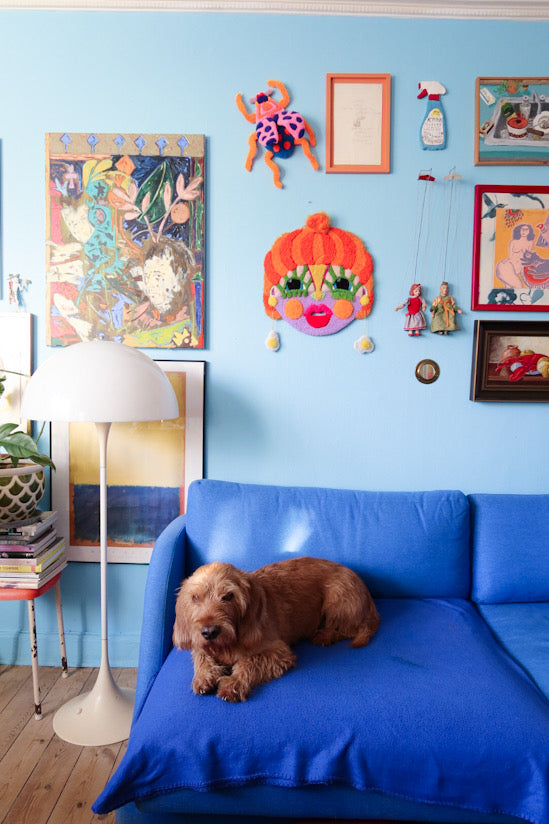 With her orange hair and colors in green, purple, and yellow, Lise For Fun captures autumn's playful spirit. She explores the delicate balance between the colorful and the natural, between the playful and the harmonious, between the lively and the felt.