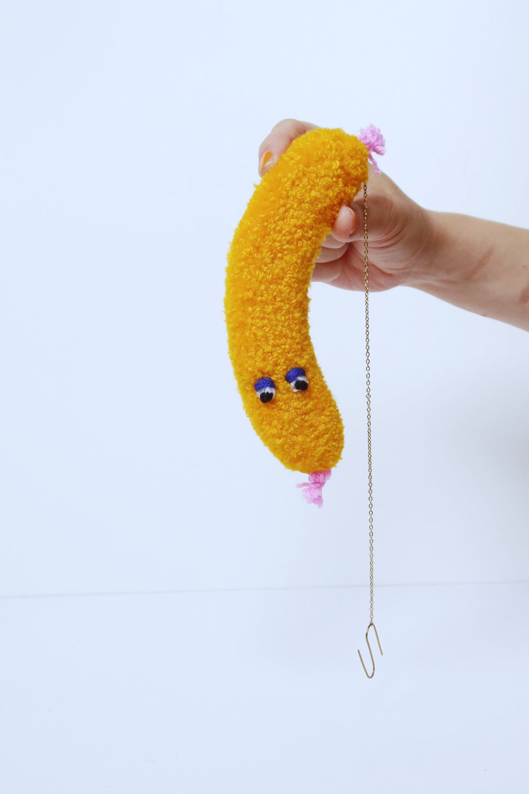 🌭 Lodden Pølse med Øjne - Gul Tekstilkunst