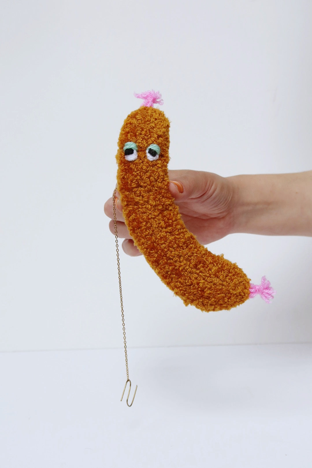 🌭 Lodden Pølse med Øjne - Brown Tekstilkunst