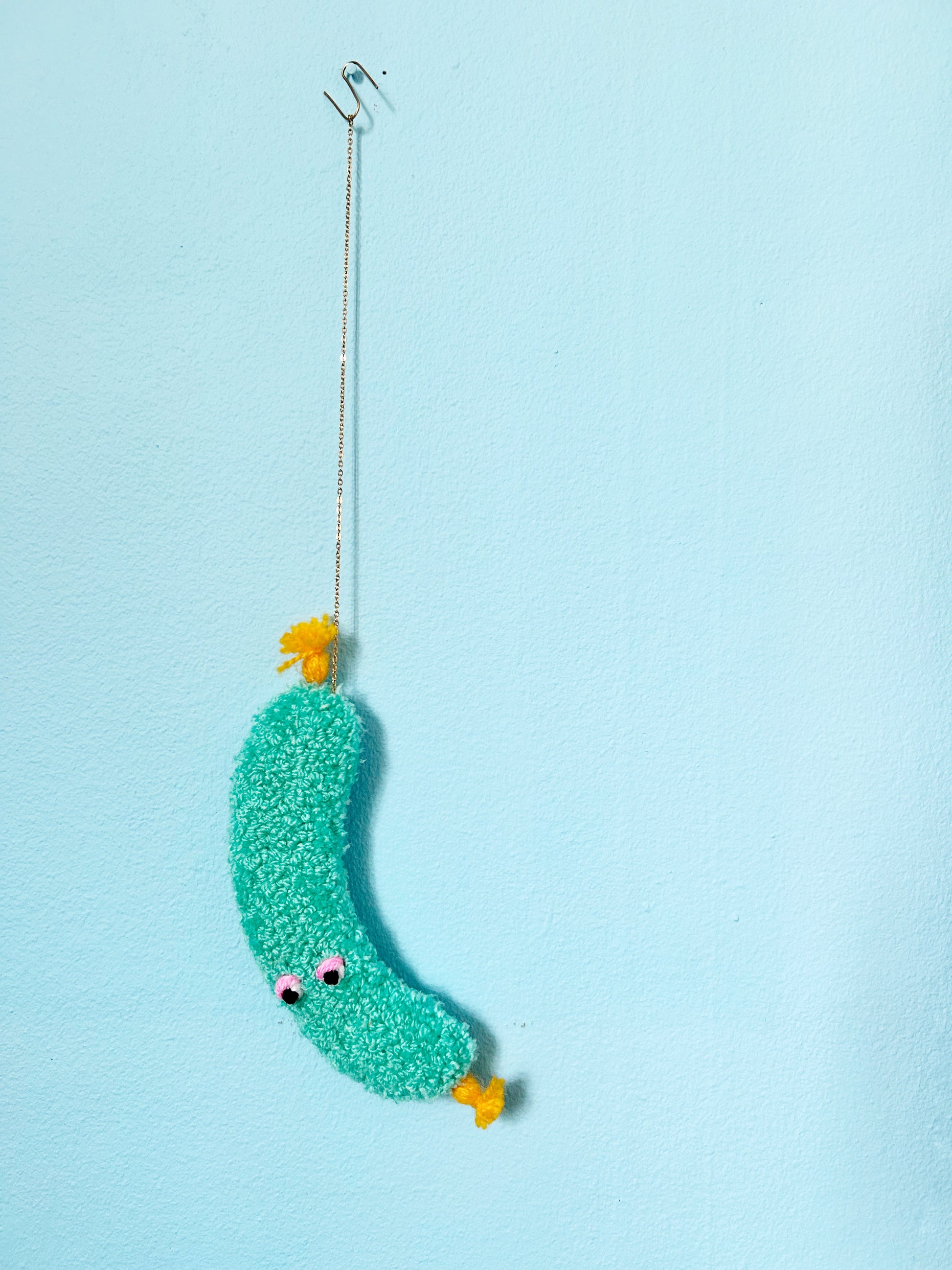 Lodden Pølse med Øjne - Lyseblå og Gul Tekstilkunst
