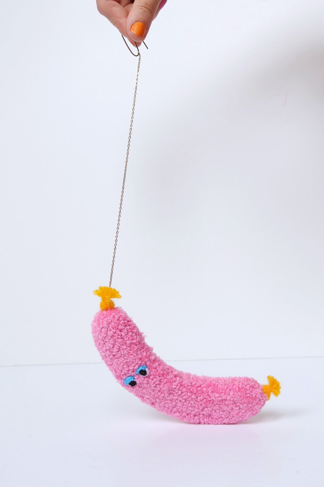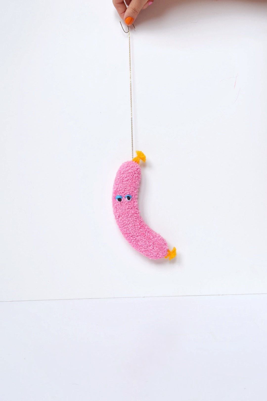 🌭 Lodden Pølse med Øjne - Lyserød Tekstilkunst