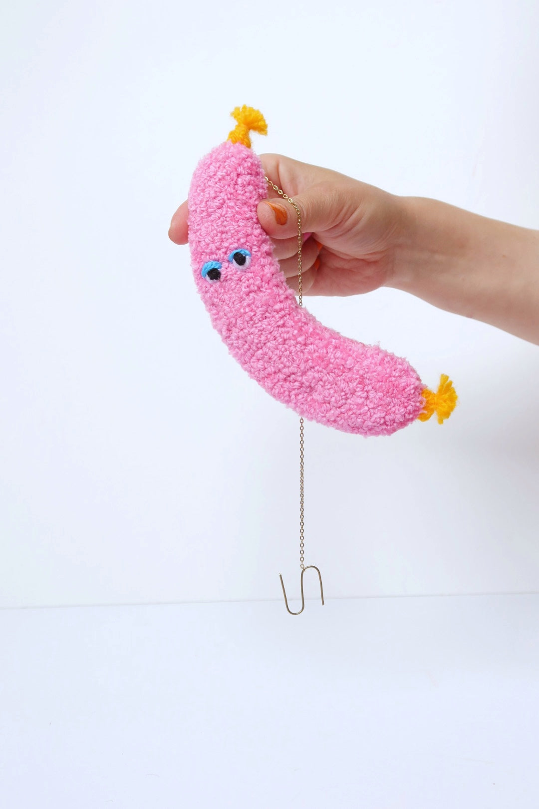 Lodden Pølse med Øjne - Lyserød Tekstilkunst