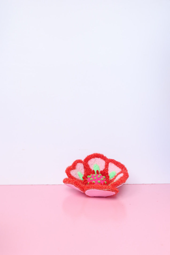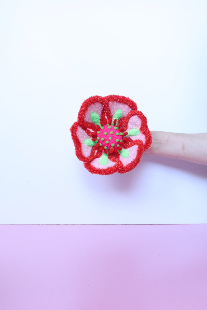 Lyserød, Rød & Grøn Blomst Skulptur - Formbar Tekstilkunst