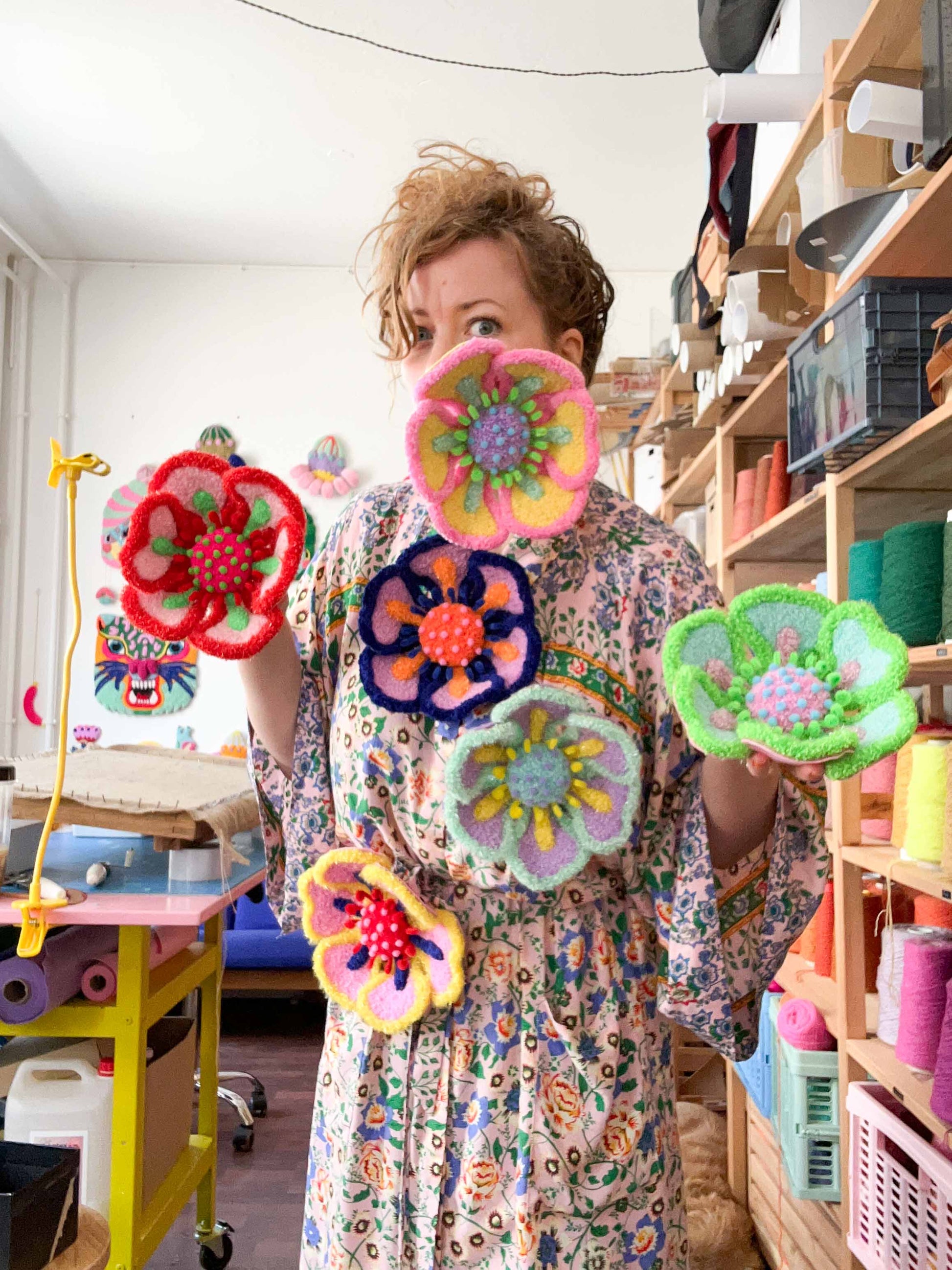 Sendes fladt pakket, så du selv kan folde og forme den til den perfekte blomst. En legende tilgang til tekstilkunst, hvor du bliver medskaber af det endelige værk.