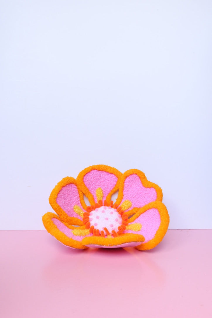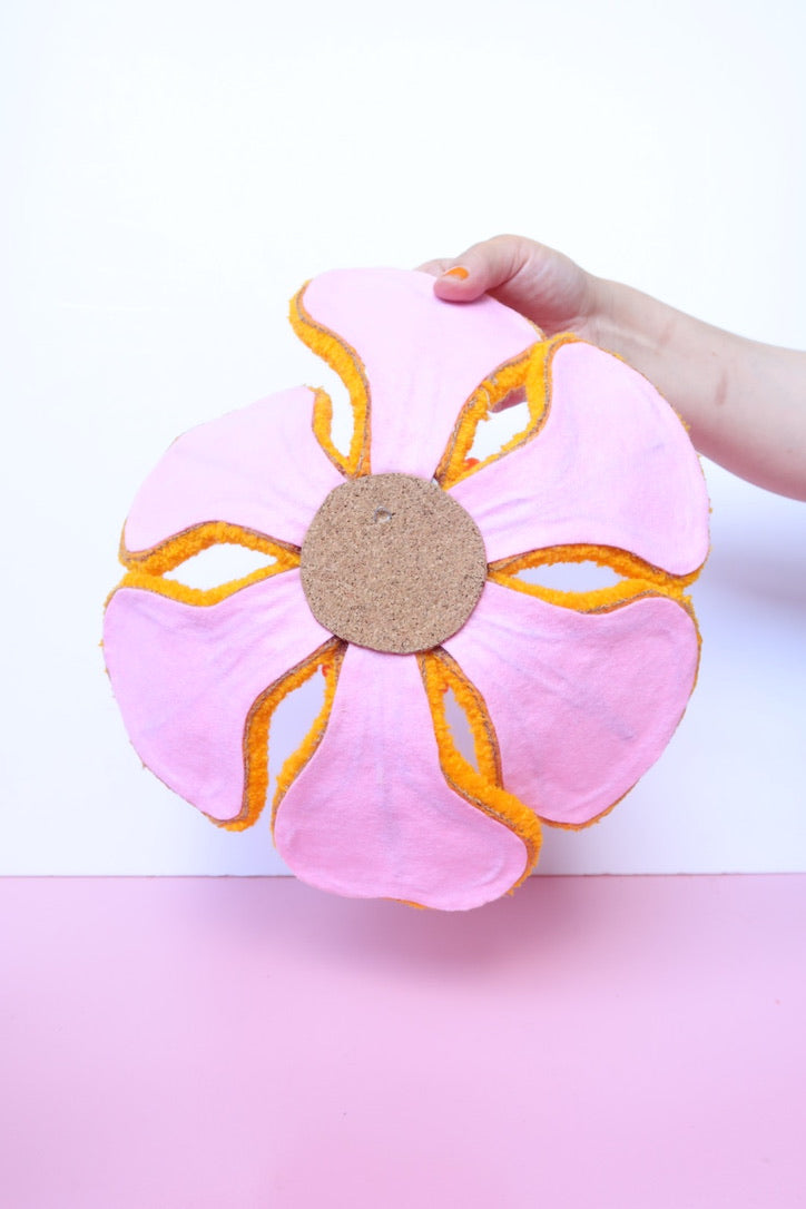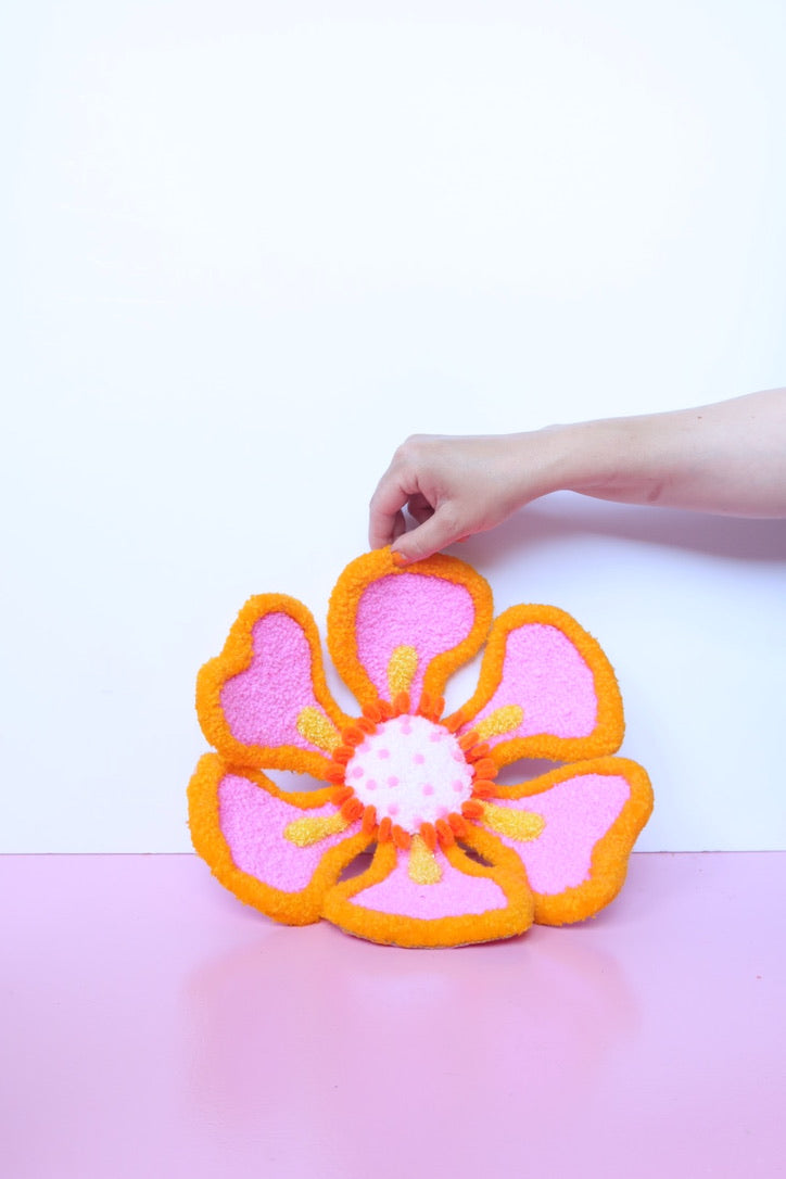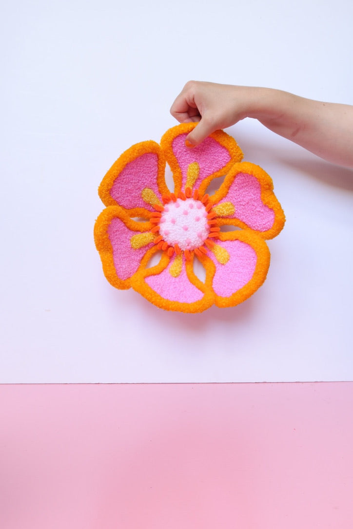 Denne håndtuftede blomst i varme, solrige farver er ikke bare kunst - den er interaktiv. Du kan forme den præcis som du vil have den, skabe din egen imponerende blomst i lyserød og gul der spreder glæde i dit hjem.