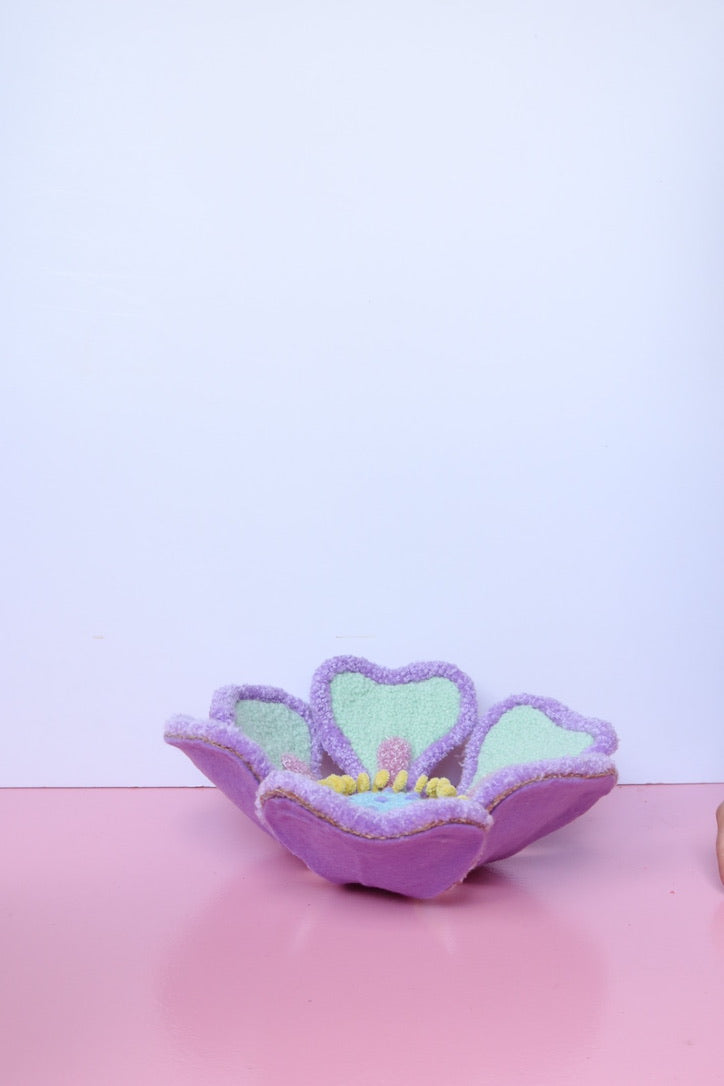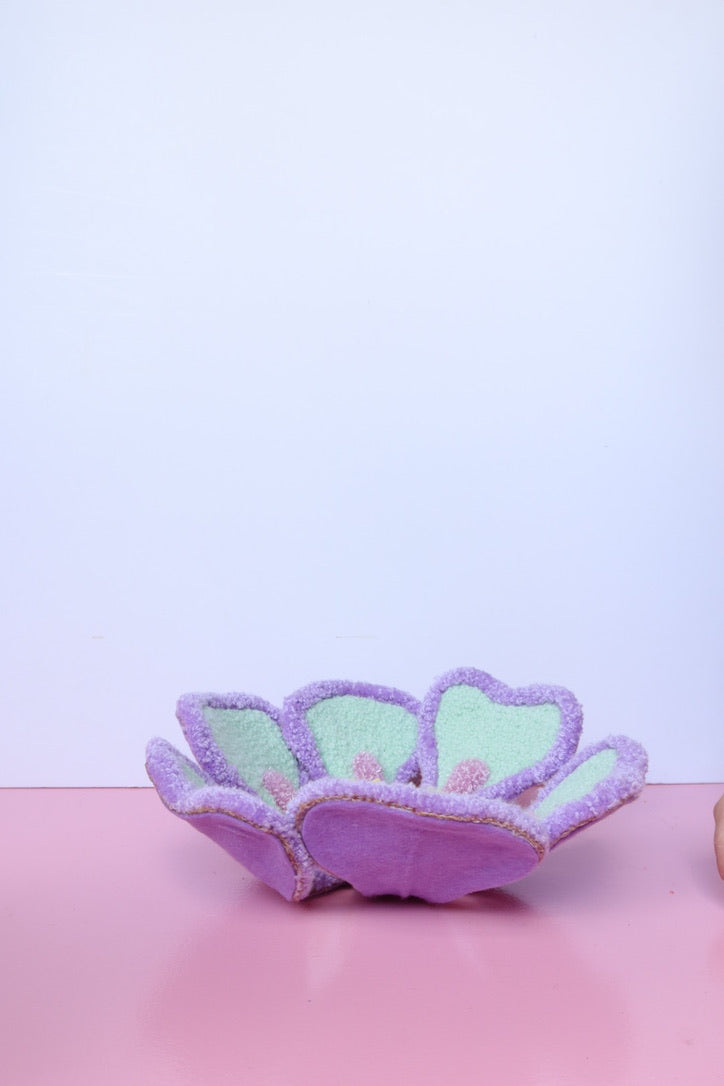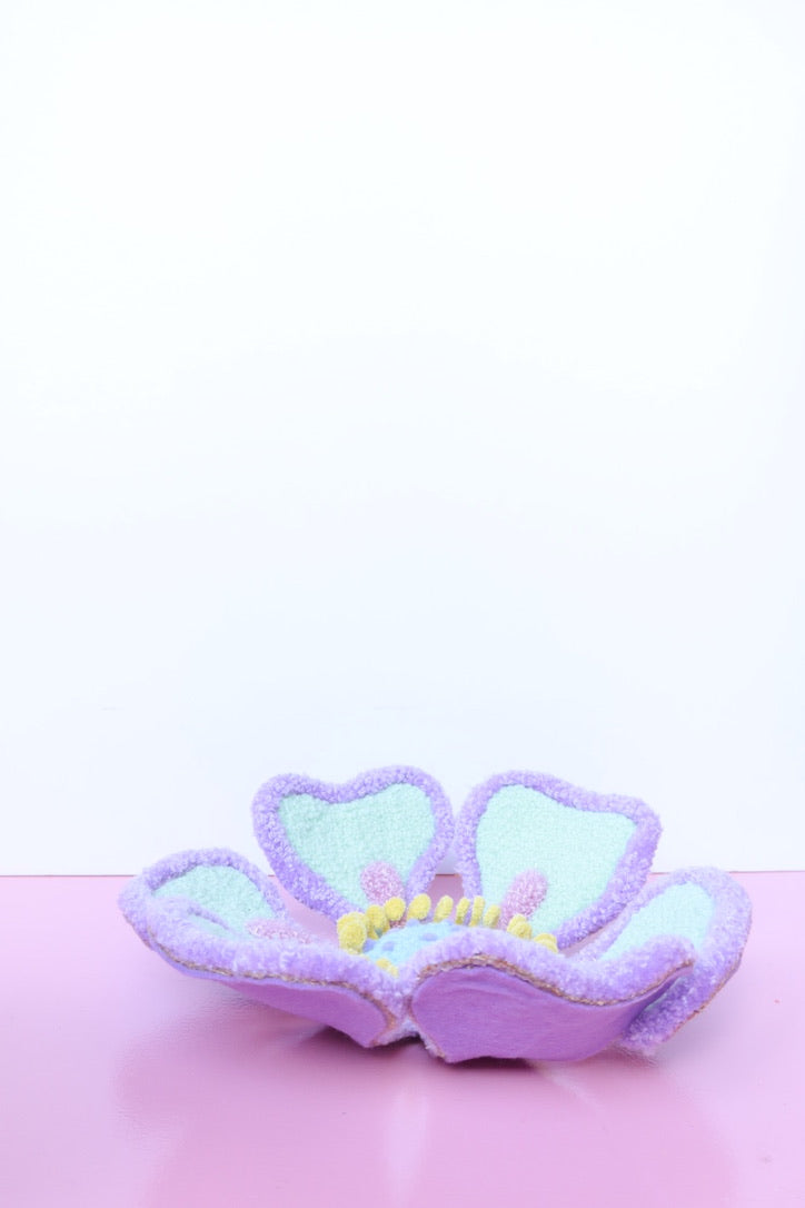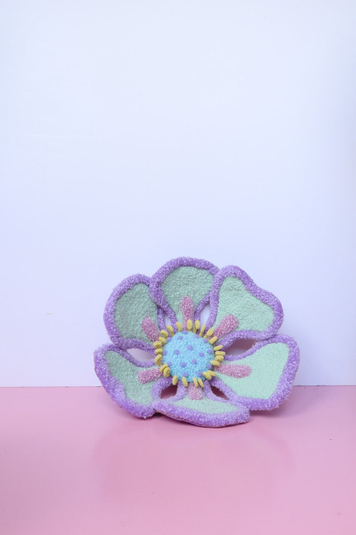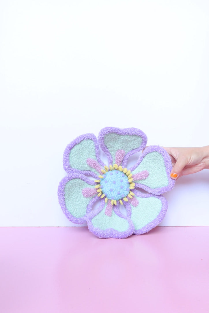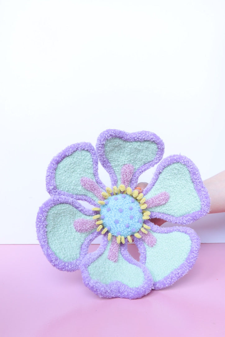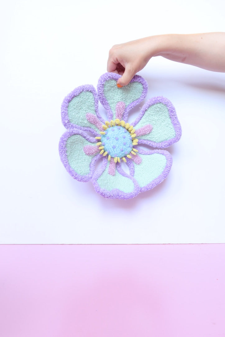 Denne håndtuftede blomst i friske forårsfarver er ikke bare kunst - den er interaktiv. Du kan forme den præcis som du vil have den, skabe din egen imponerende blomst i mintgrøn, lyserød og gul der passer perfekt til dit hjem.