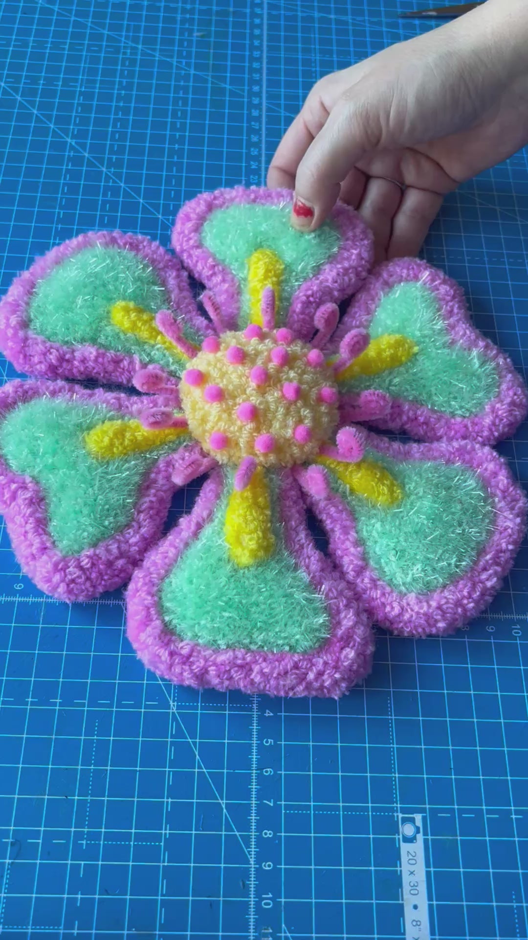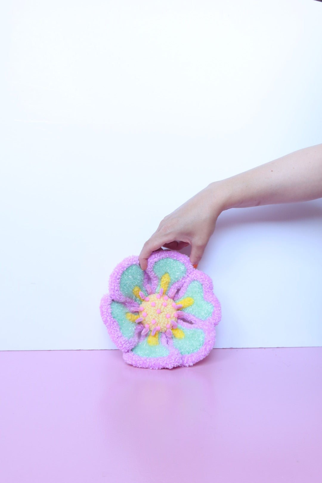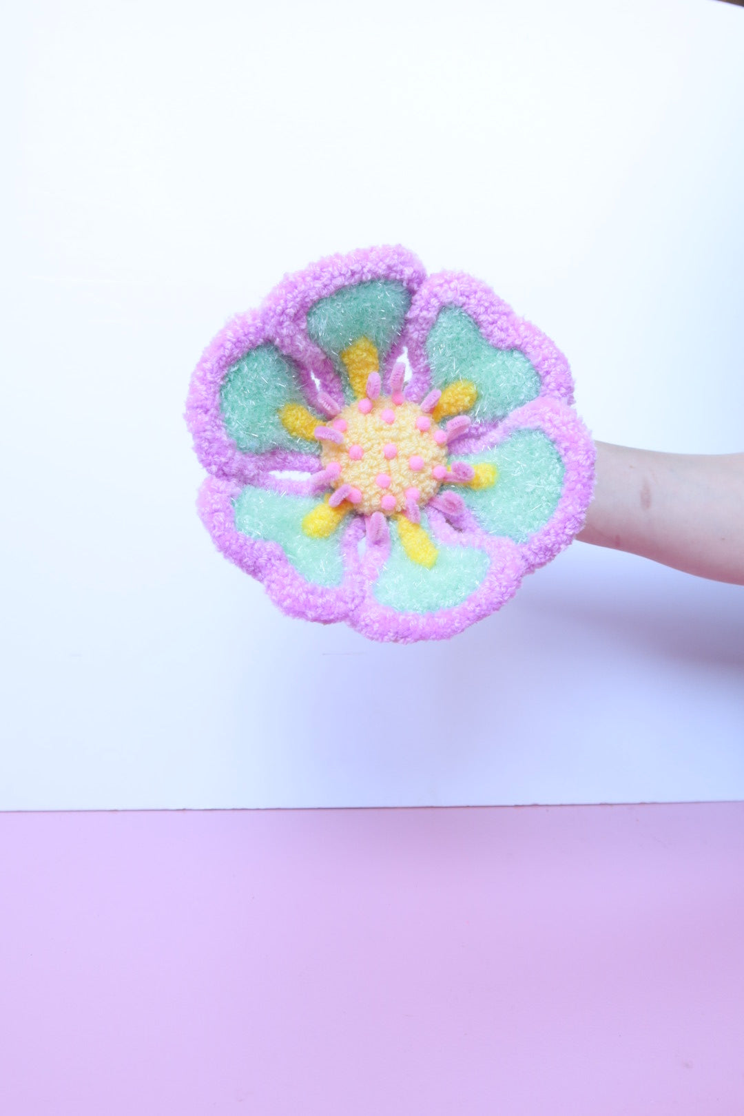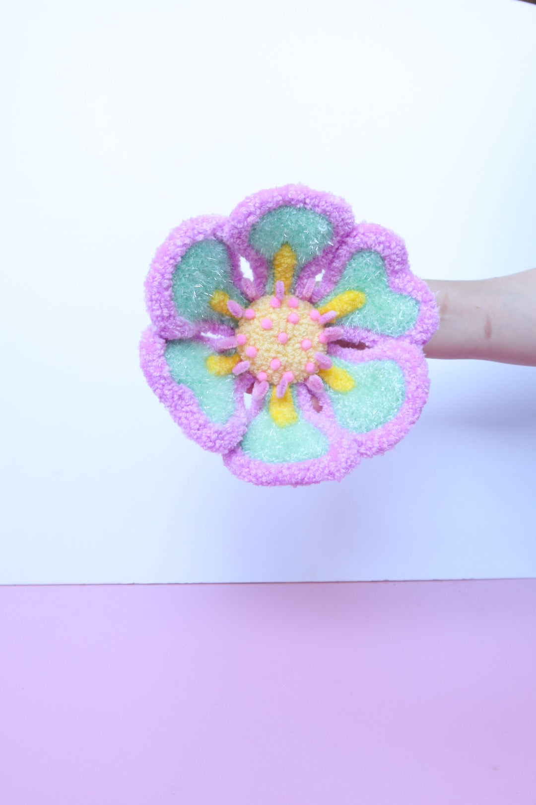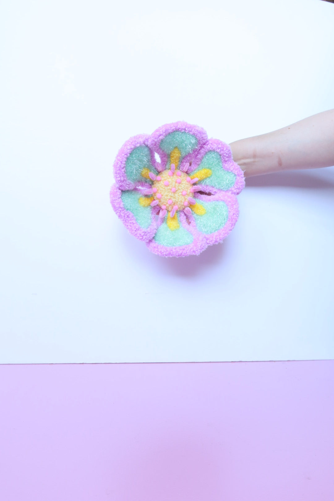 Denne håndtuftede blomst i smukke pastellfarver er ikke bare kunst - den er interaktiv. Du kan forme den præcis som du vil have den, skabe din egen unikke blomst i mint, lyserød og gul der passer til dit hjem og din stemning.