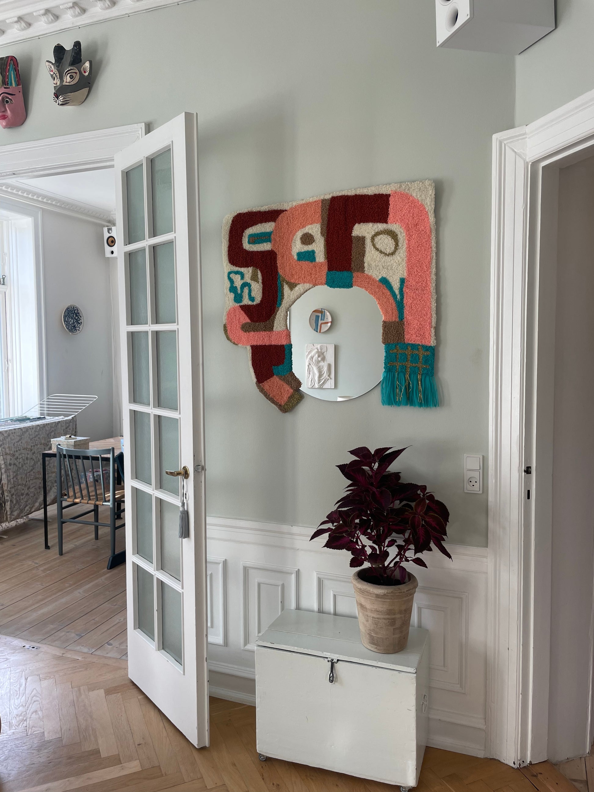 🧶 Materiale: 100% akryl og 100% uldgarn, hessian og latex