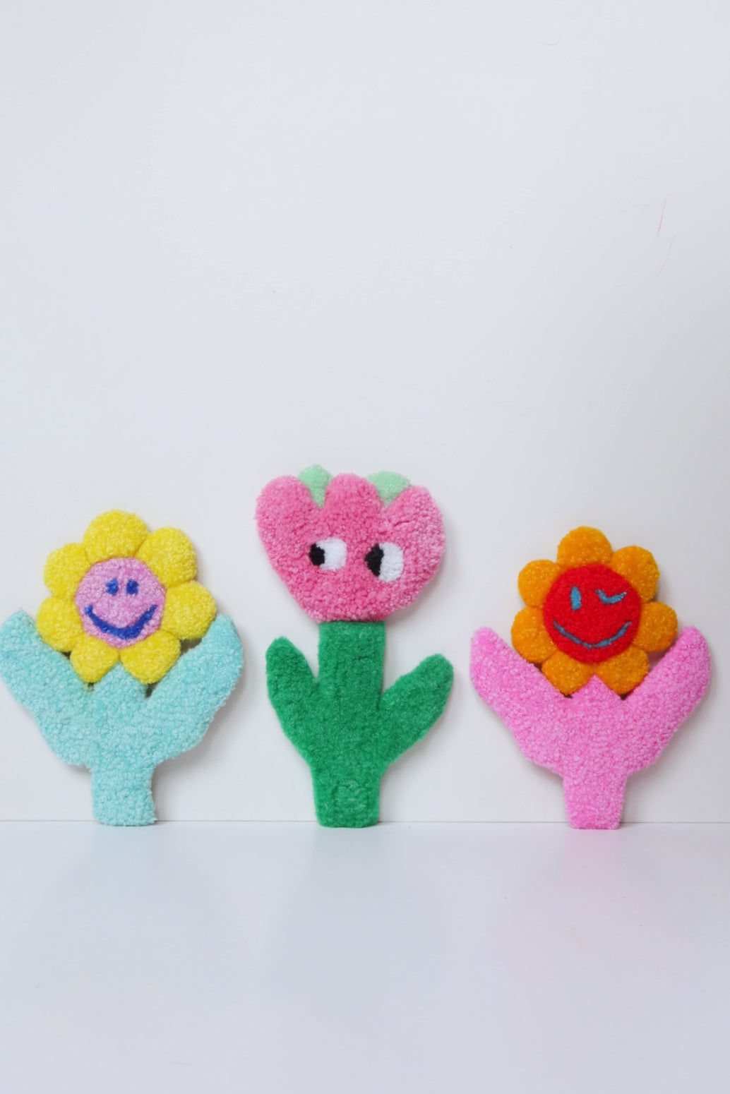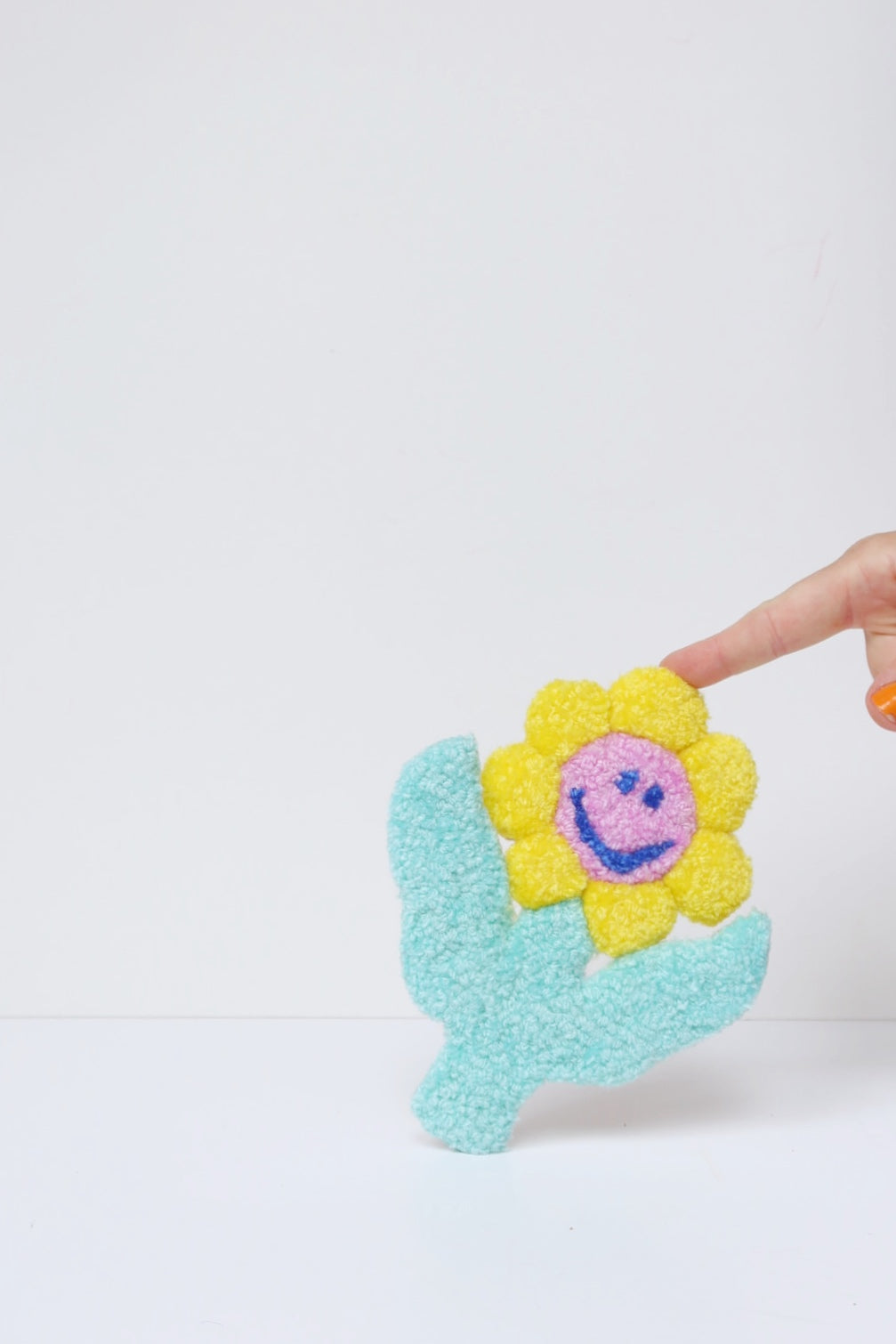 Smiley Face Blomst - Gul, Lyserød & Lyseblå Tekstilkunst