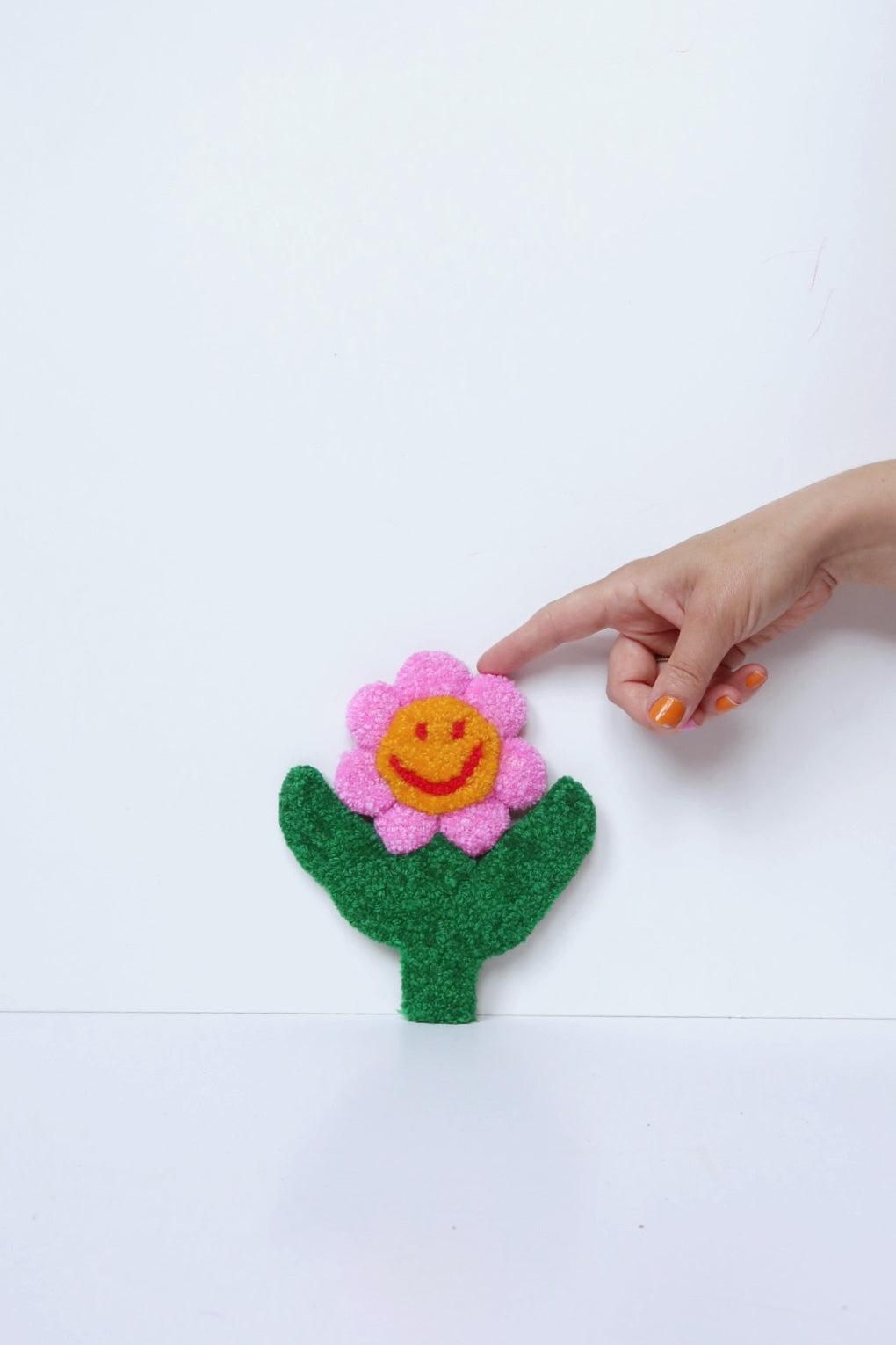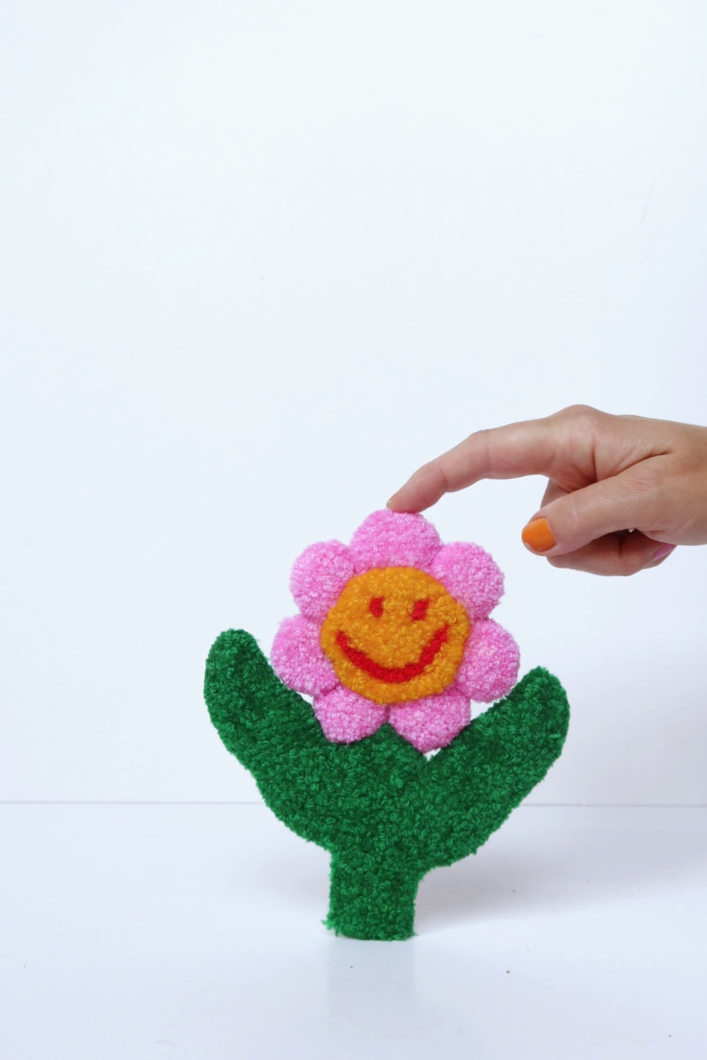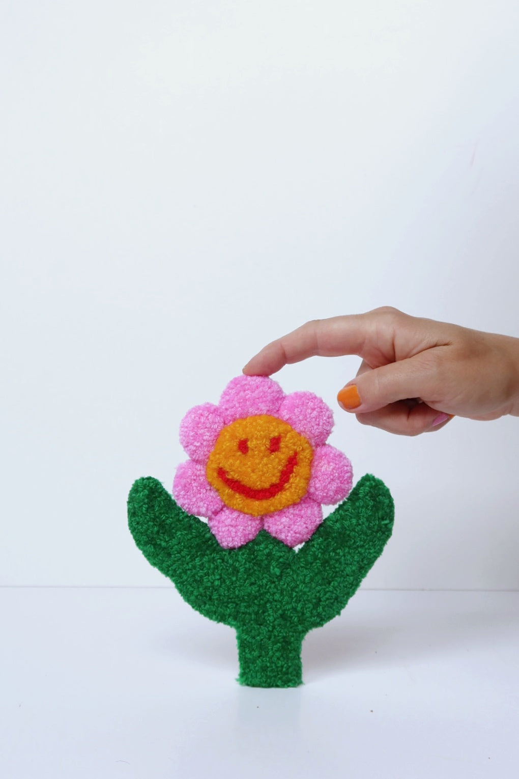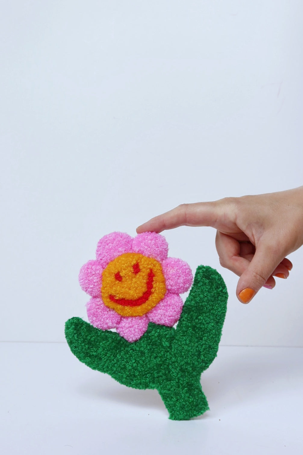 Smiley Face Blomst - Pink, Gul & Grøn Tekstilkunst