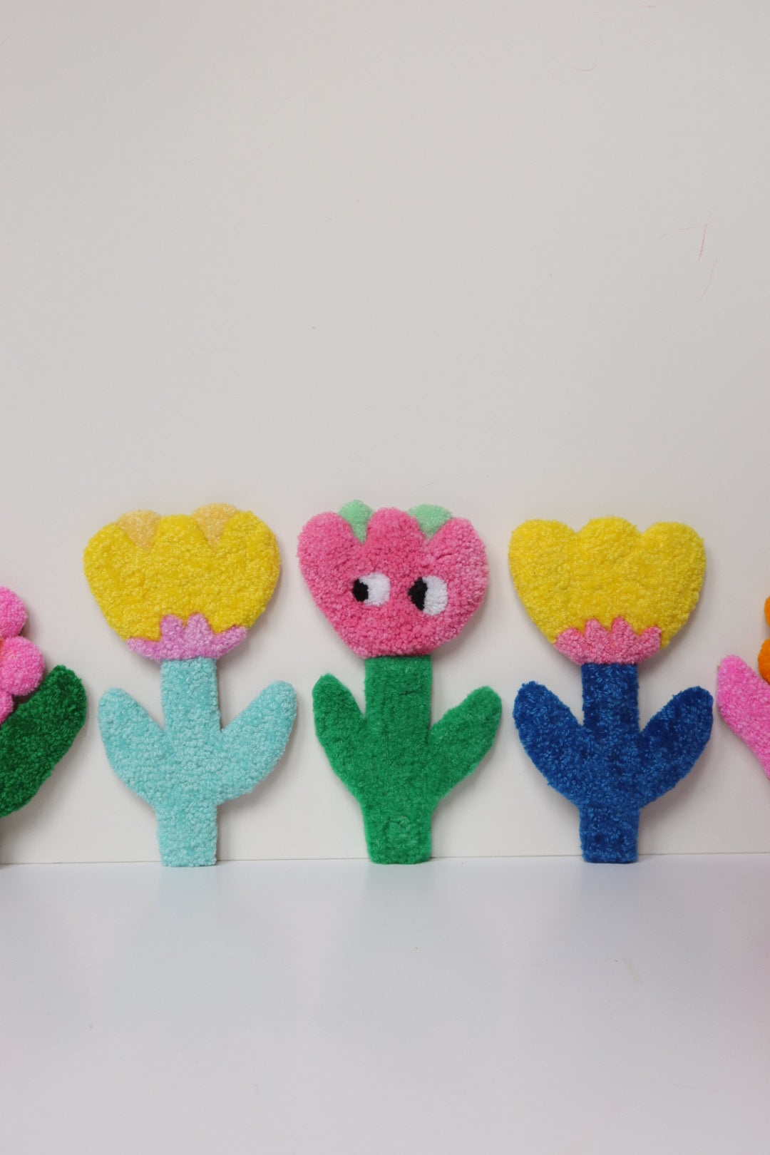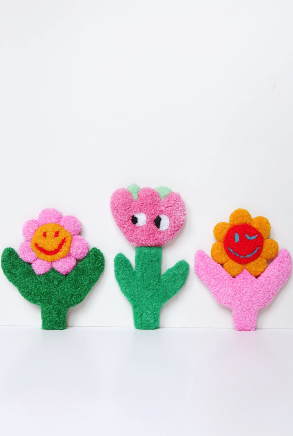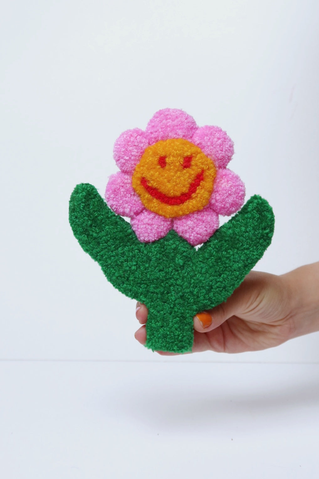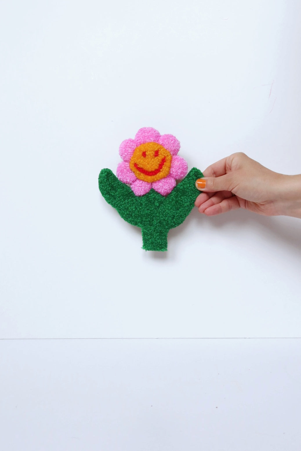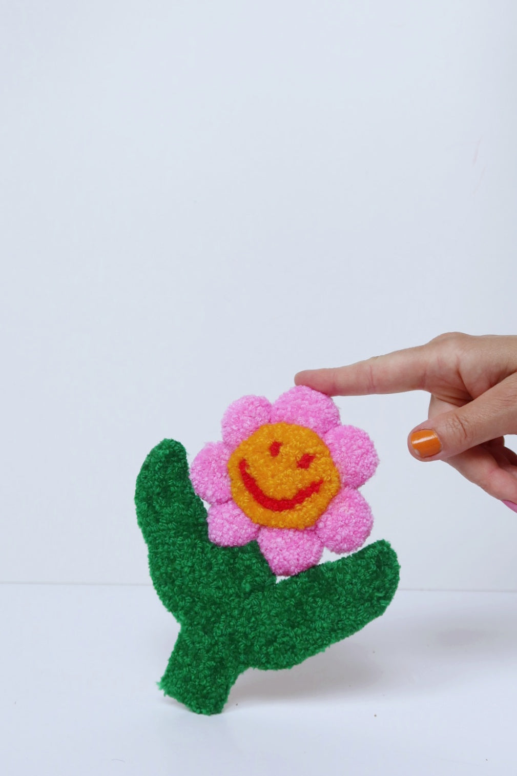 Smiley Face Blomst - Pink, Gul & Grøn Tekstilkunst