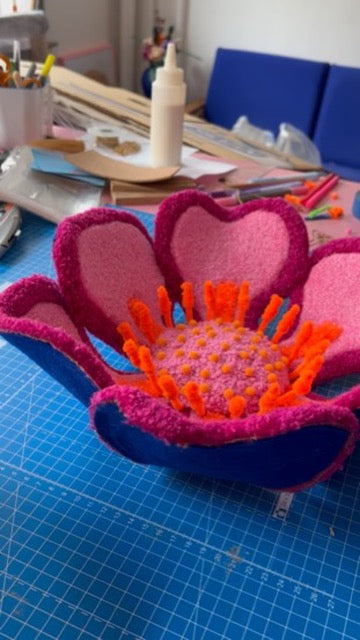 Sendes fladt pakket, så du selv kan folde og forme den til den perfekte store blomst. En legende tilgang til tekstilkunst, hvor du bliver medskaber af det endelige værk.