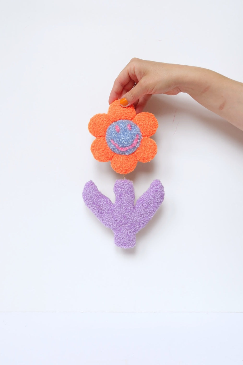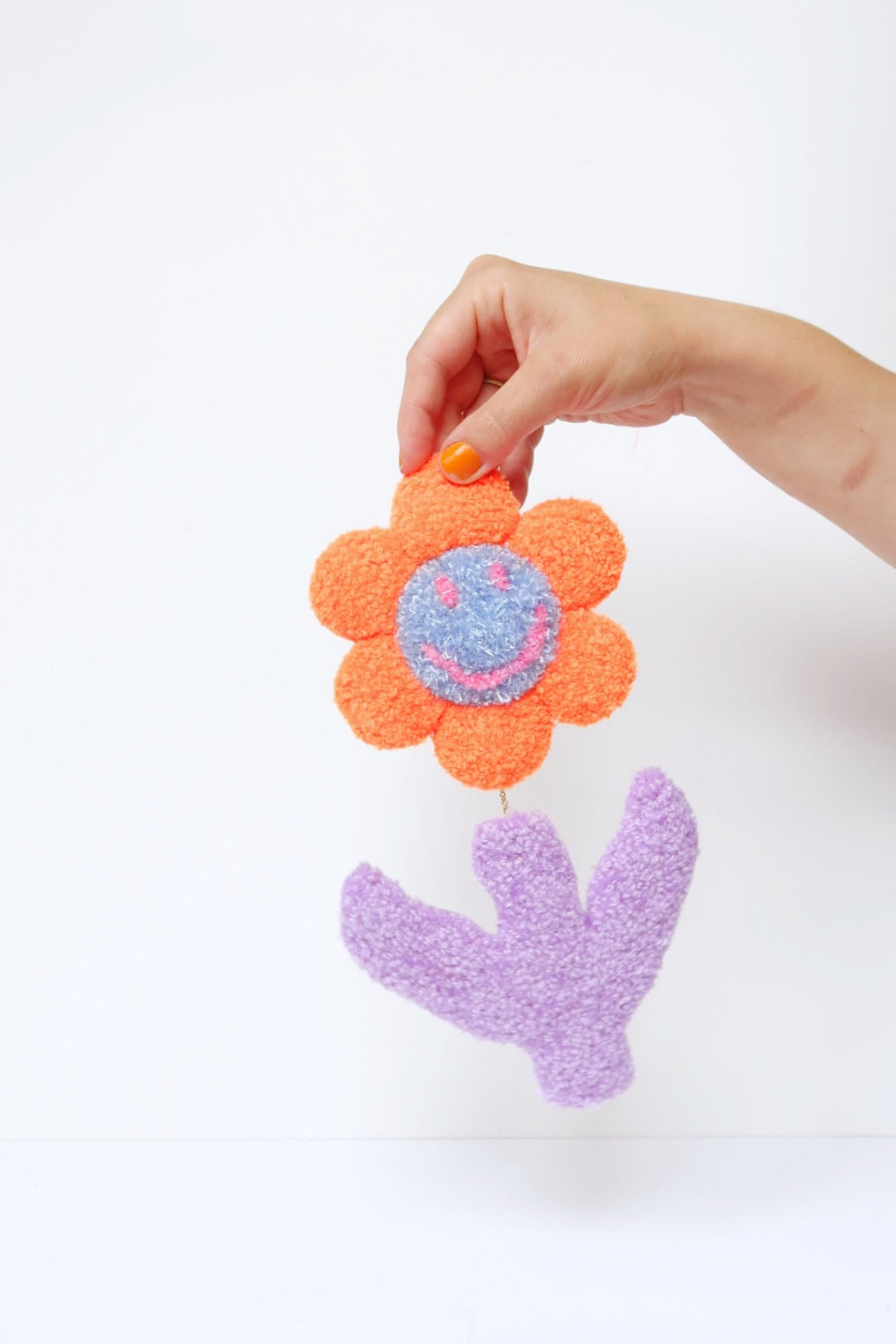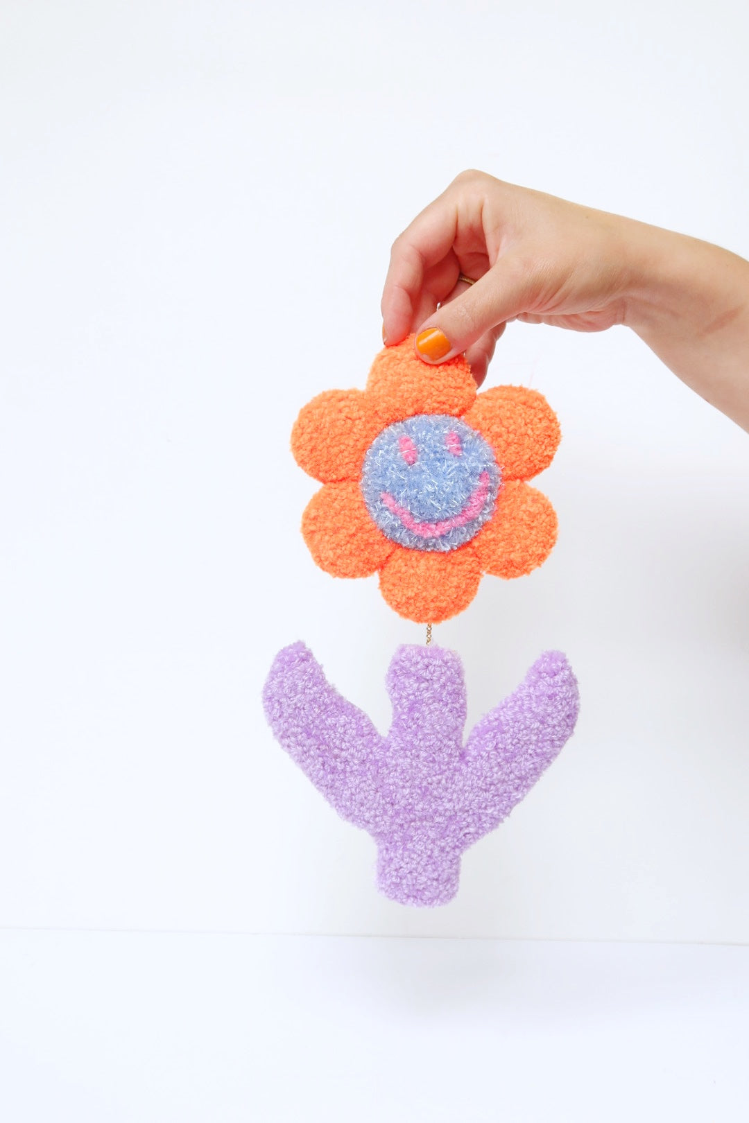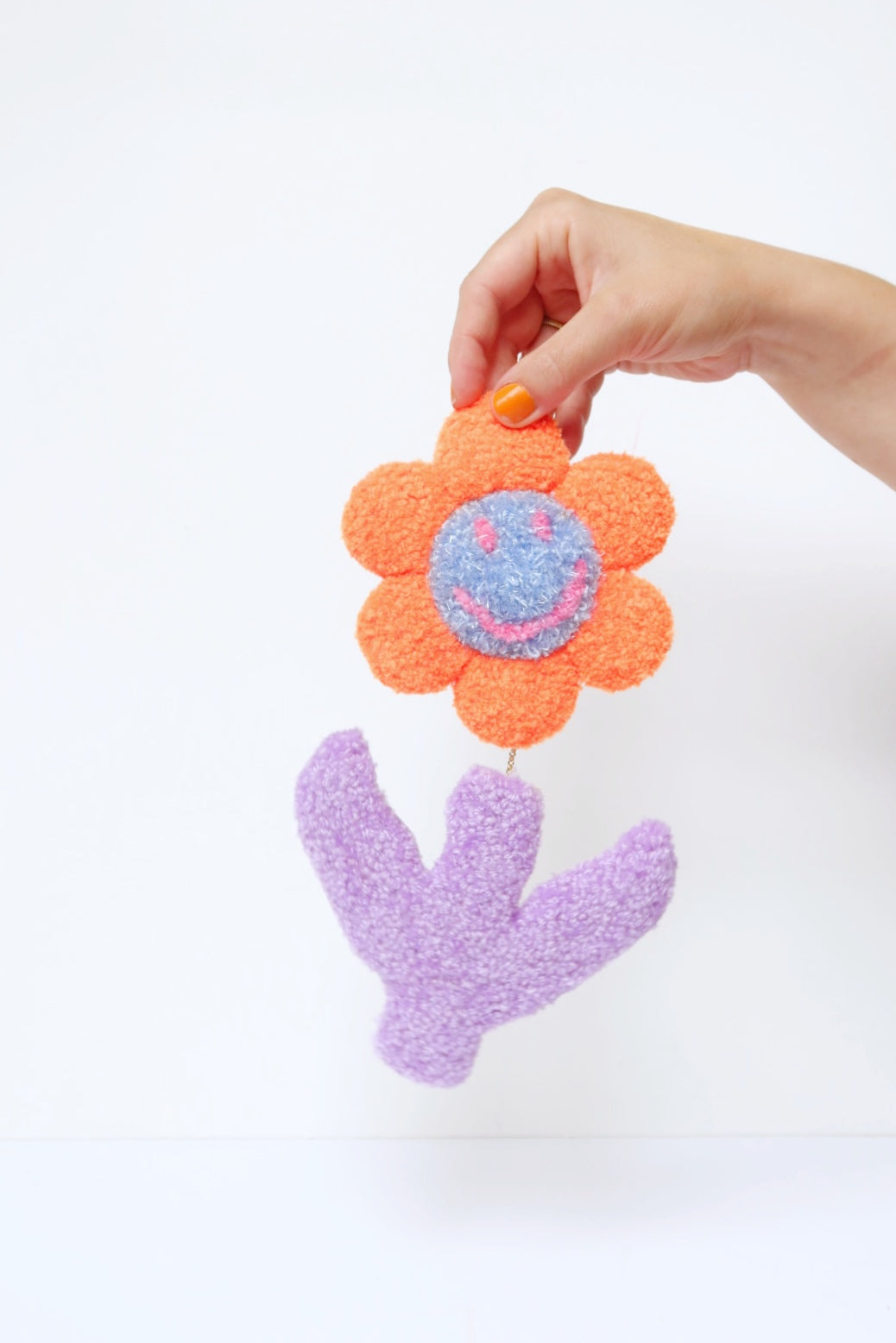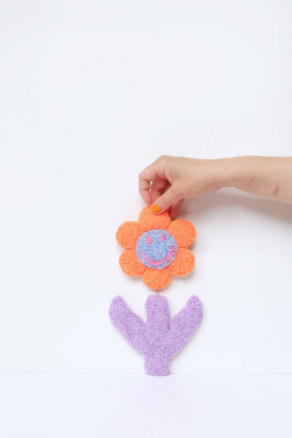 😊 Stor Smiley Face Blomst - Orange, Lyseblå & Syren Tekstilkunst